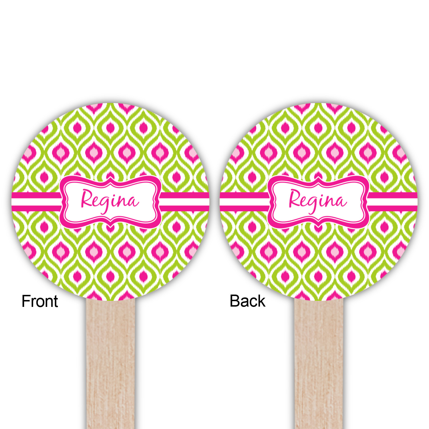 Looking for a girly girl design. The pink and green ikat print with a decorative label is as girly as it gets. We have created this ikat pattern in lime green, orchid pink and hot pink. For all of us girly girls and princesses, this is our absolute favorite!