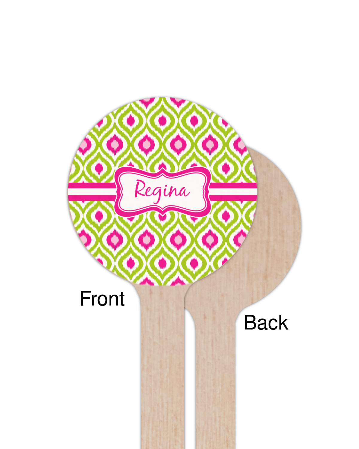 Looking for a girly girl design. The pink and green ikat print with a decorative label is as girly as it gets. We have created this ikat pattern in lime green, orchid pink and hot pink. For all of us girly girls and princesses, this is our absolute favorite!