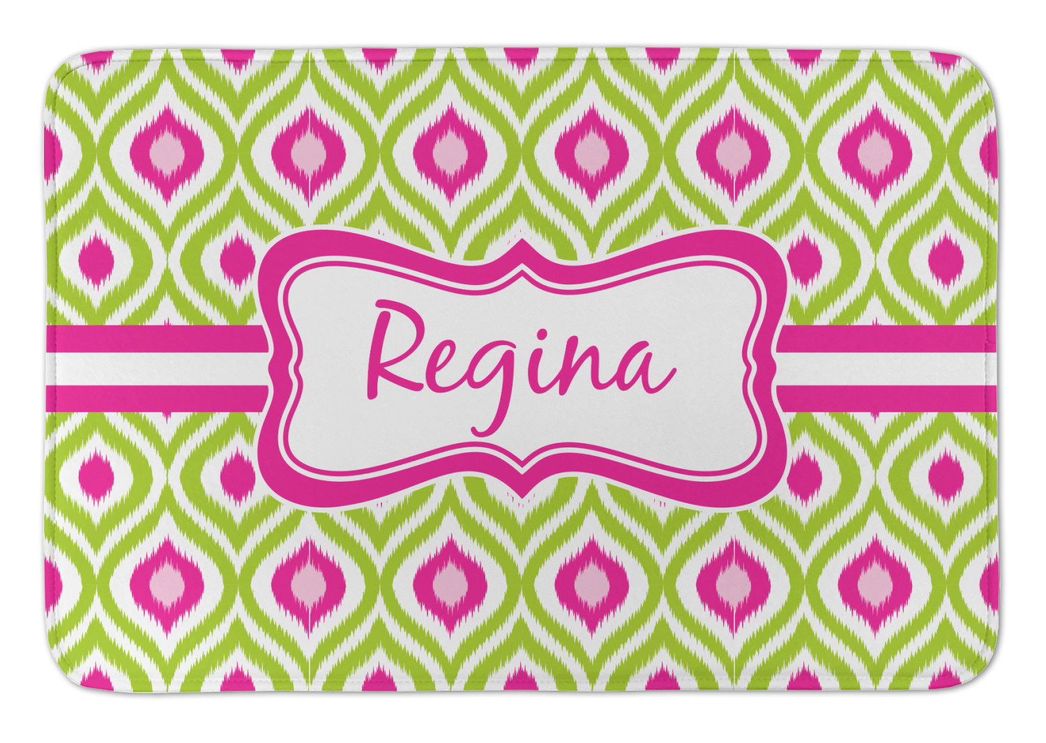 Looking for a girly girl design. The pink and green ikat print with a decorative label is as girly as it gets. We have created this ikat pattern in lime green, orchid pink and hot pink. For all of us girly girls and princesses, this is our absolute favorite!