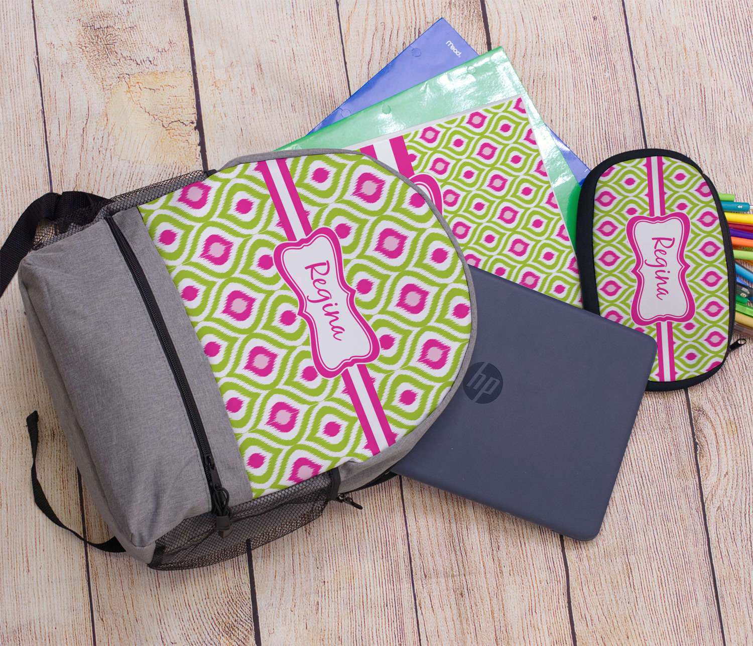 Looking for a girly girl design. The pink and green ikat print with a decorative label is as girly as it gets. We have created this ikat pattern in lime green, orchid pink and hot pink. For all of us girly girls and princesses, this is our absolute favorite!