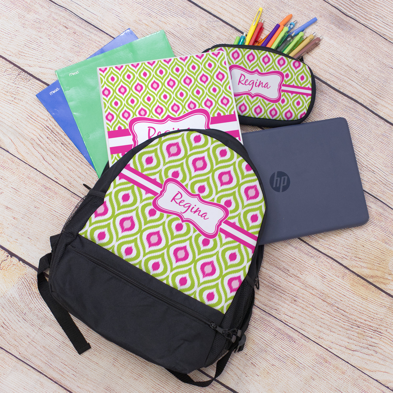 Looking for a girly girl design. The pink and green ikat print with a decorative label is as girly as it gets. We have created this ikat pattern in lime green, orchid pink and hot pink. For all of us girly girls and princesses, this is our absolute favorite!