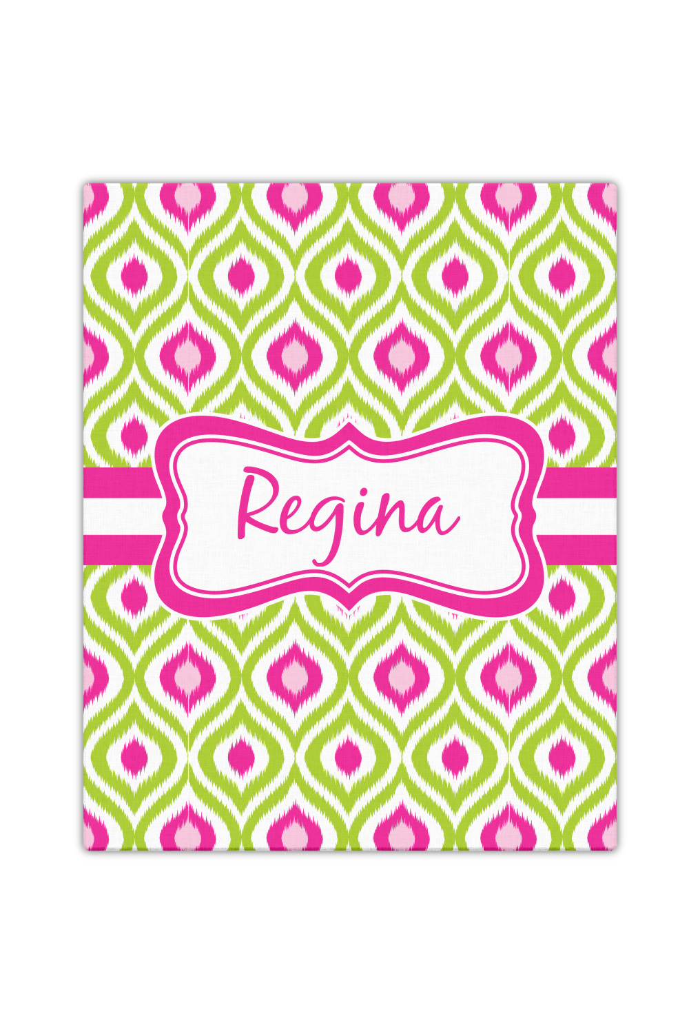 Looking for a girly girl design. The pink and green ikat print with a decorative label is as girly as it gets. We have created this ikat pattern in lime green, orchid pink and hot pink. For all of us girly girls and princesses, this is our absolute favorite!