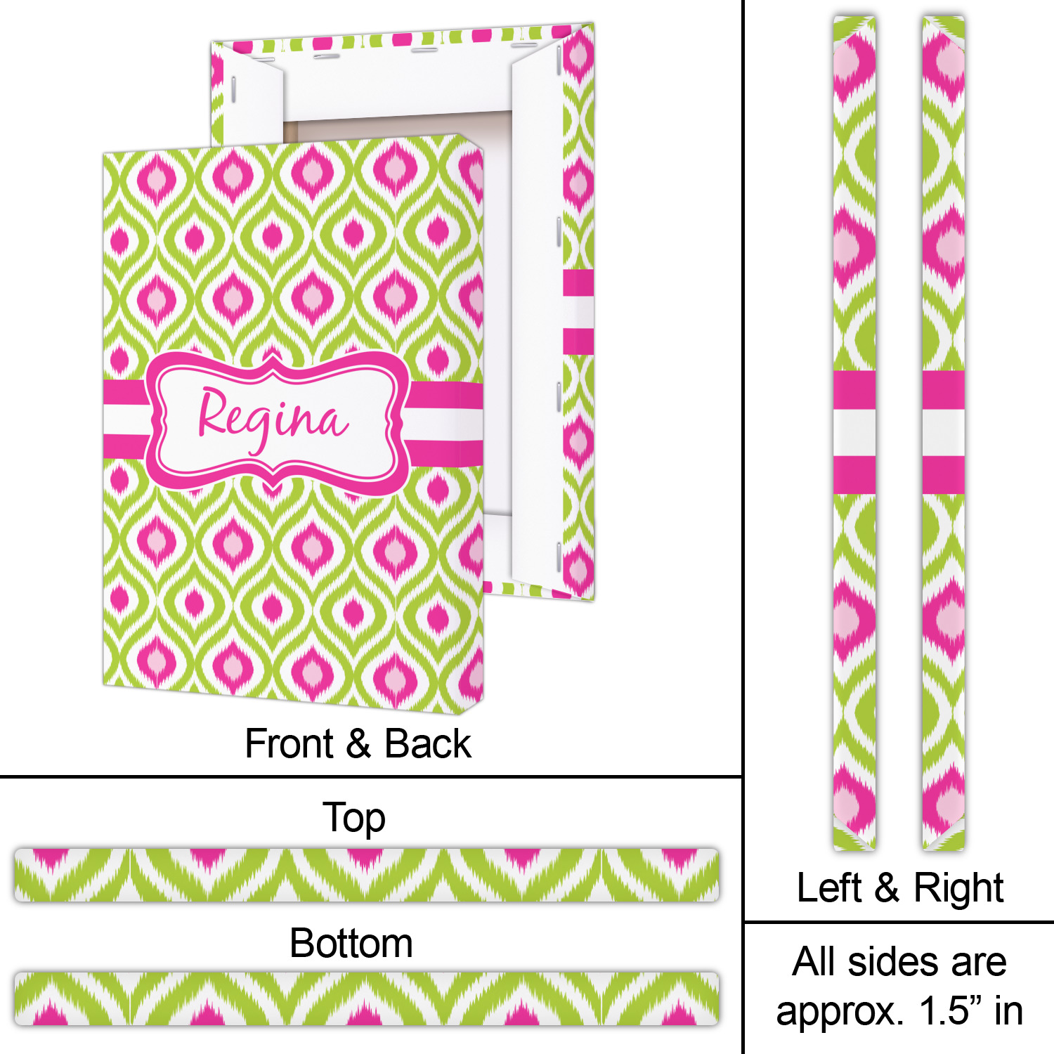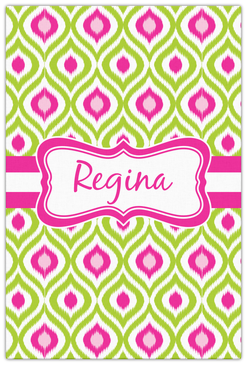 Looking for a girly girl design. The pink and green ikat print with a decorative label is as girly as it gets. We have created this ikat pattern in lime green, orchid pink and hot pink. For all of us girly girls and princesses, this is our absolute favorite!