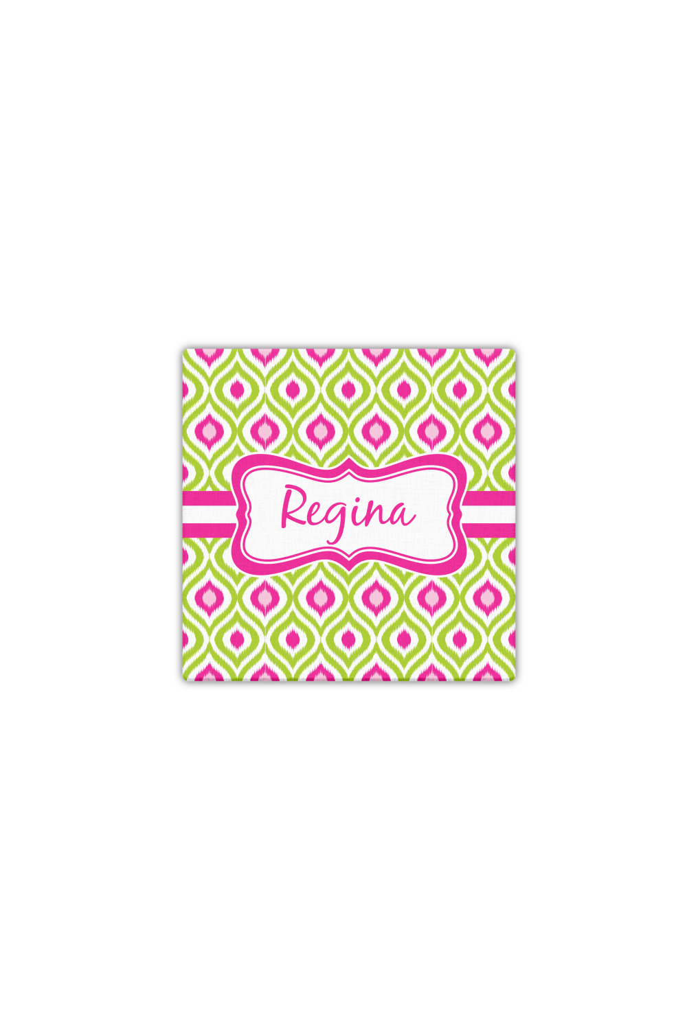 Looking for a girly girl design. The pink and green ikat print with a decorative label is as girly as it gets. We have created this ikat pattern in lime green, orchid pink and hot pink. For all of us girly girls and princesses, this is our absolute favorite!