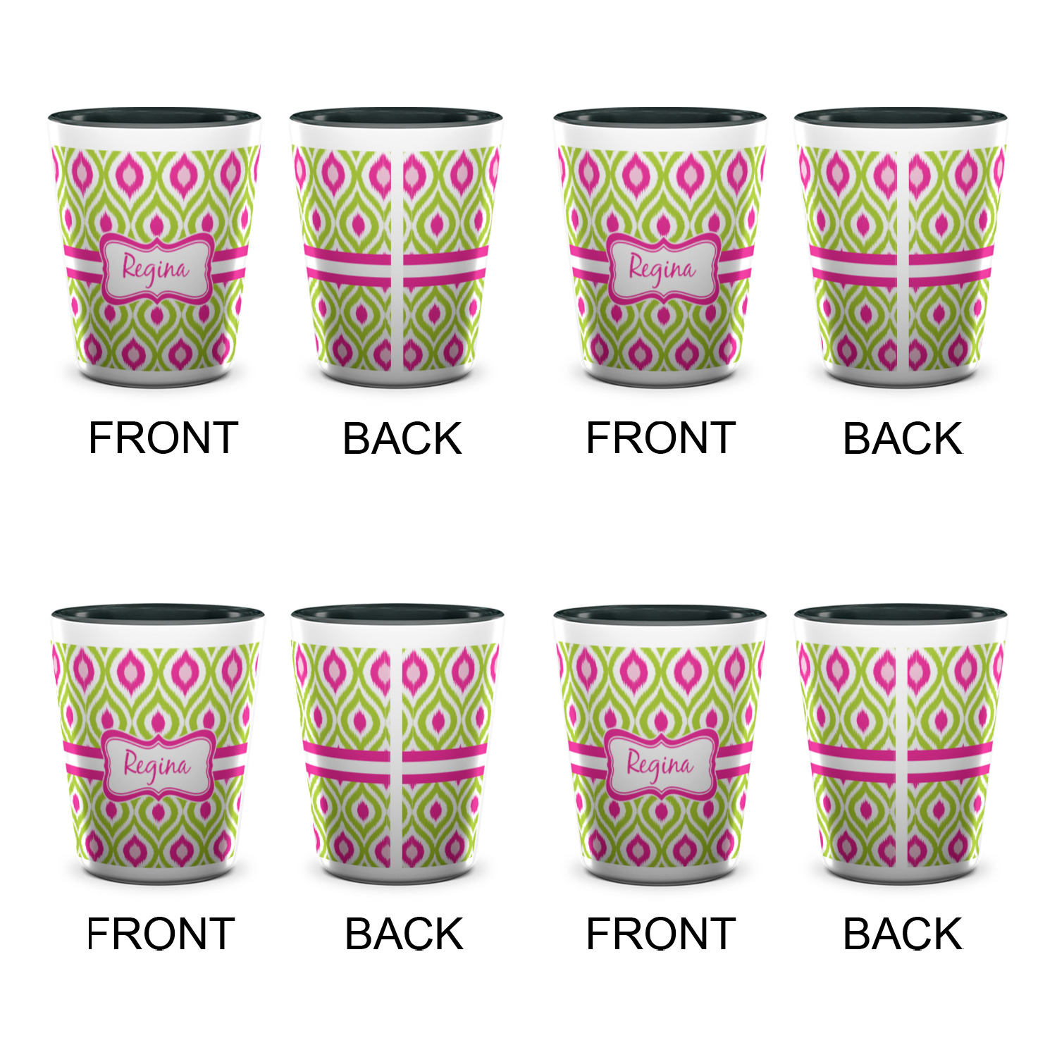 Made from ceramic these shot glasses are printed in full color with the design of your choice. These are a standard 1.5oz size and stand 2.25" tall. Available in a full white ceramic or a two-tone with a black color inside the shot glass. Buy a single or a set of 4, all of which can be designed separately to get you just what you want and need.