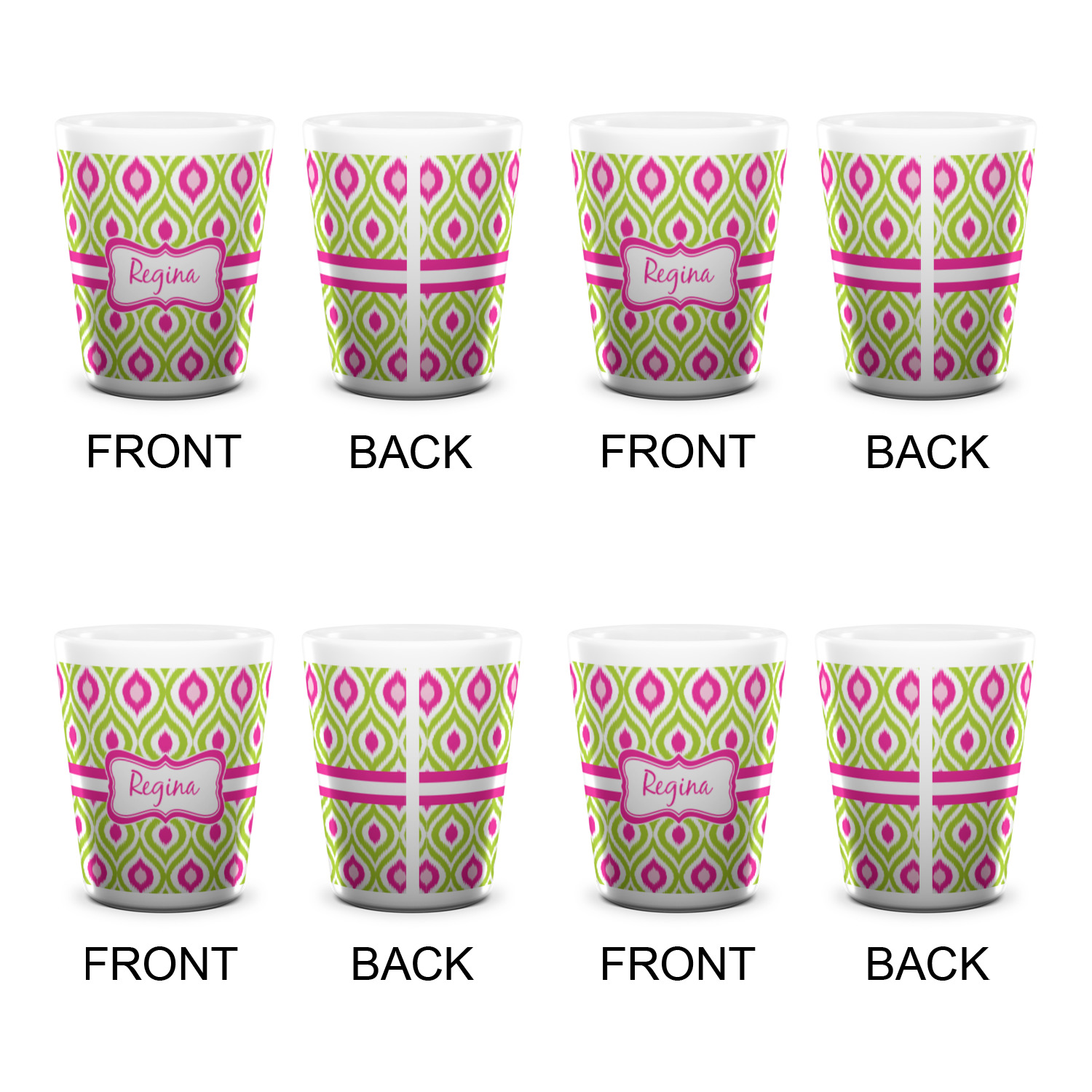 Made from ceramic these shot glasses are printed in full color with the design of your choice. These are a standard 1.5oz size and stand 2.25" tall. Available in a full white ceramic or a two-tone with a black color inside the shot glass. Buy a single or a set of 4, all of which can be designed separately to get you just what you want and need.