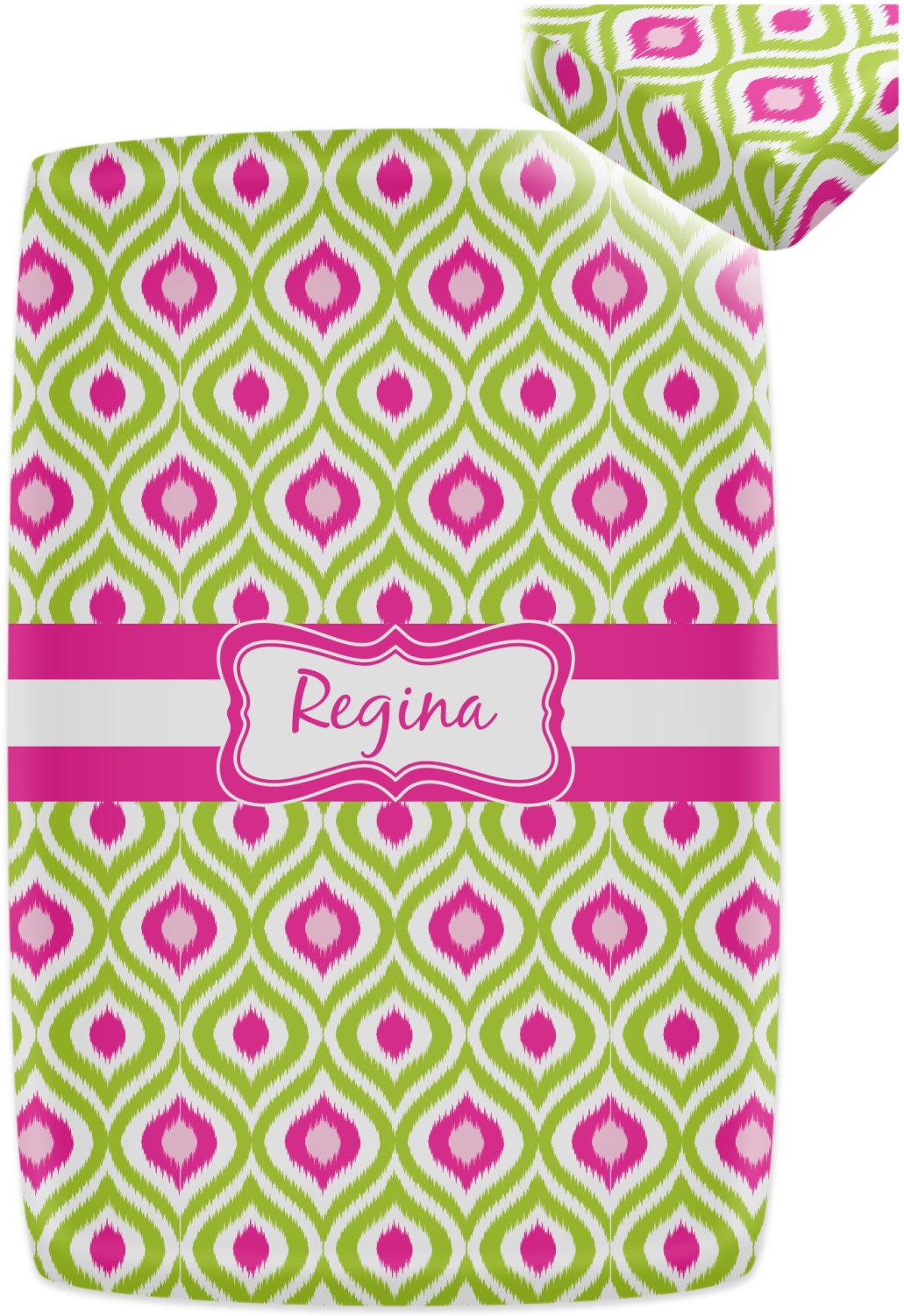 Looking for a girly girl design. The pink and green ikat print with a decorative label is as girly as it gets. We have created this ikat pattern in lime green, orchid pink and hot pink. For all of us girly girls and princesses, this is our absolute favorite!