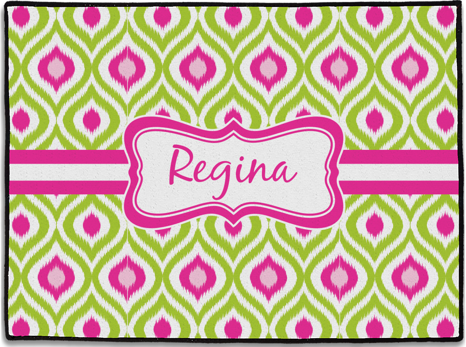 Looking for a girly girl design. The pink and green ikat print with a decorative label is as girly as it gets. We have created this ikat pattern in lime green, orchid pink and hot pink. For all of us girly girls and princesses, this is our absolute favorite!