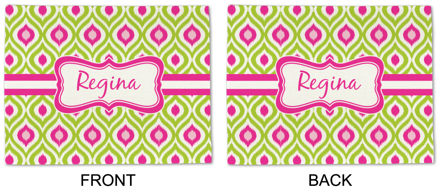 Looking for a girly girl design. The pink and green ikat print with a decorative label is as girly as it gets. We have created this ikat pattern in lime green, orchid pink and hot pink. For all of us girly girls and princesses, this is our absolute favorite!