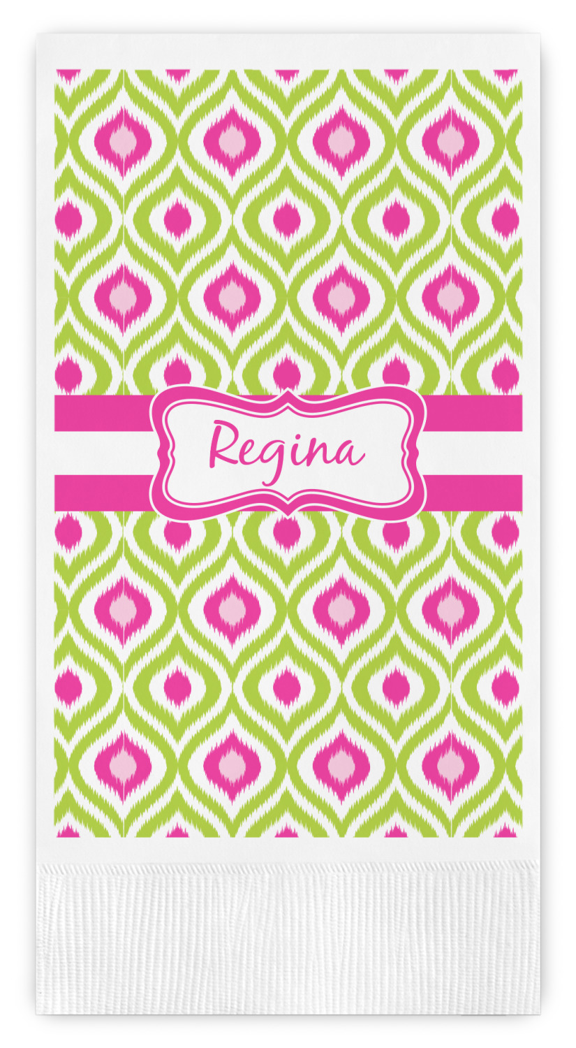 Looking for a girly girl design. The pink and green ikat print with a decorative label is as girly as it gets. We have created this ikat pattern in lime green, orchid pink and hot pink. For all of us girly girls and princesses, this is our absolute favorite!