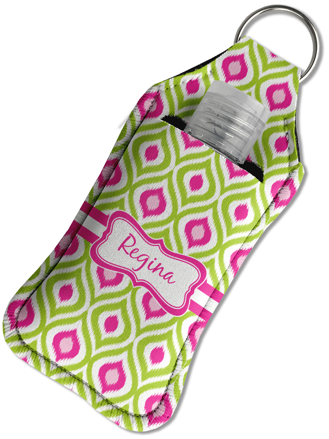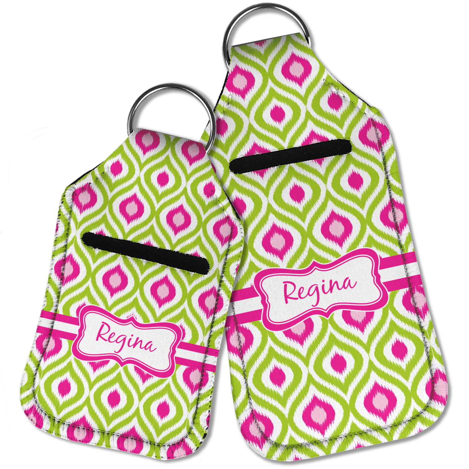 Each hand sanitizer holder comes with its own empty travel-sized, refillable hand sanitizer sure to fit snug in your customized sanitizer case! Our hand sanitizer cases are a durable, yet soft neoprene material sure to last any daily activities or travel agenda. Customize and personalize a hand sanitizer bottle holder with one of our two sizes - small (4.25" x 2.25") or large (5.5" x 2.5"). Each travel sanitizer holder comes with a keyring for attachment on bags, keys, or more!