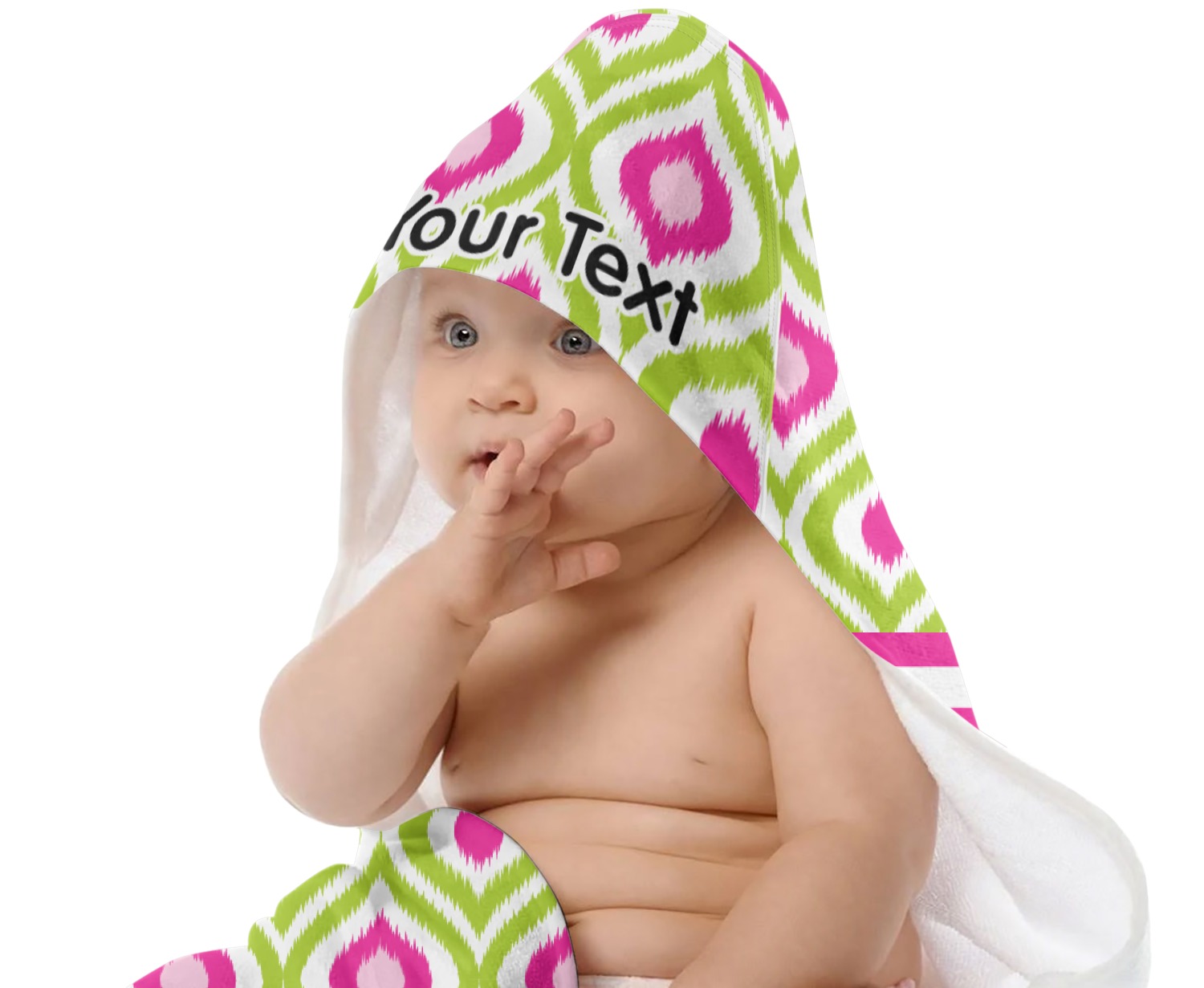 This baby towel is made with a plush microfiber velour and cotton terry. and thus will be soft and gentle against your newborn's skin, but also, very absorbent. Your customization is printed across the front & the hood, while the inside is a classy white.