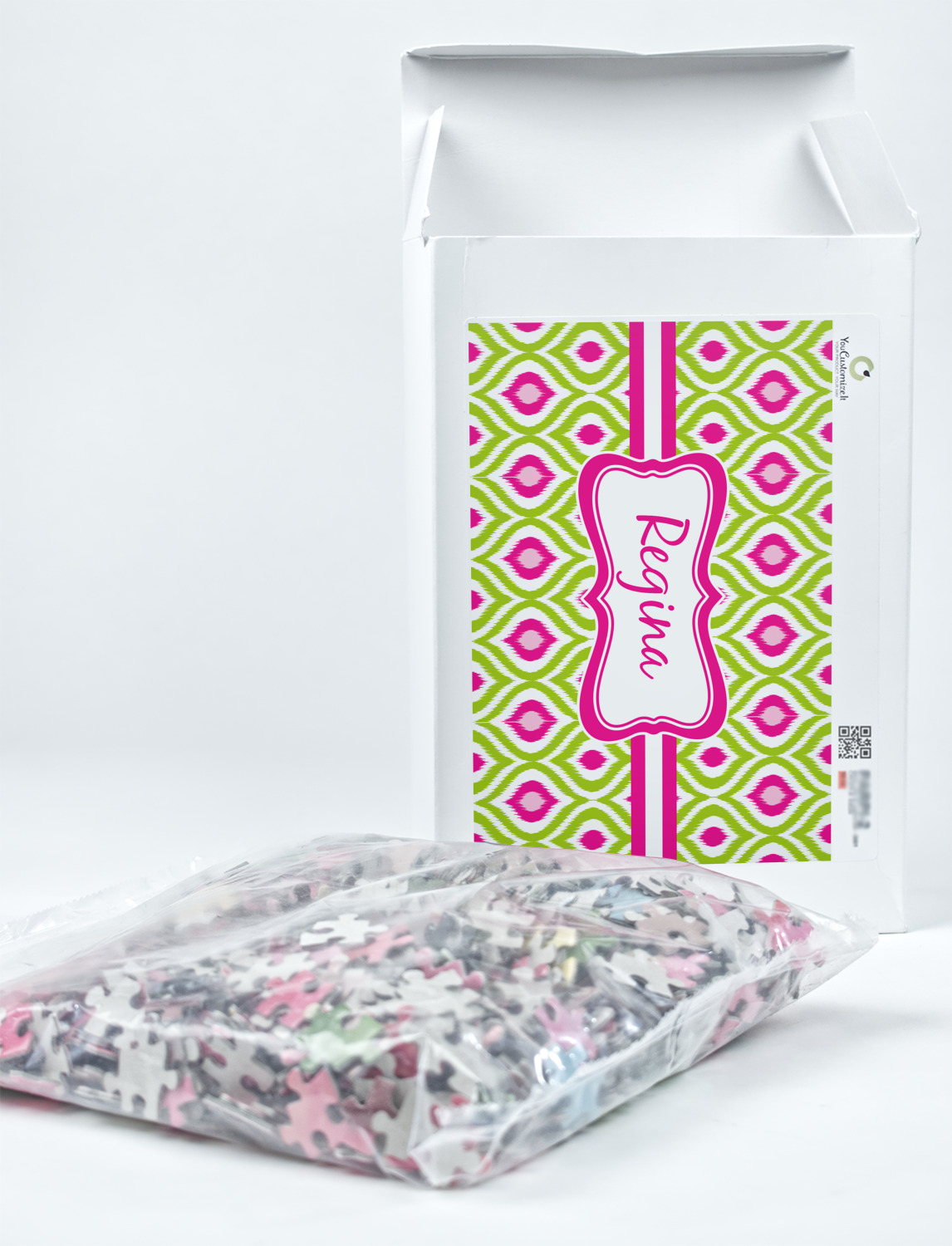You can also upload your logo or art that you or your kids drew. To create more challenging jigsaw puzzles, you can create a pattern from with your logo or artwork. You can also add other elements such as text or personalization.
