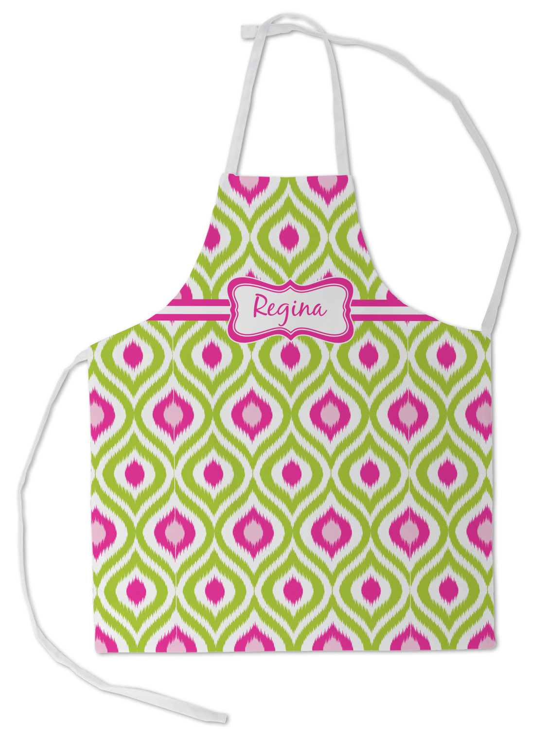 Looking for a girly girl design. The pink and green ikat print with a decorative label is as girly as it gets. We have created this ikat pattern in lime green, orchid pink and hot pink. For all of us girly girls and princesses, this is our absolute favorite!
