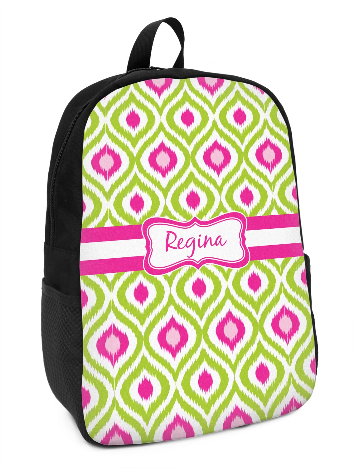 Looking for a girly girl design. The pink and green ikat print with a decorative label is as girly as it gets. We have created this ikat pattern in lime green, orchid pink and hot pink. For all of us girly girls and princesses, this is our absolute favorite!