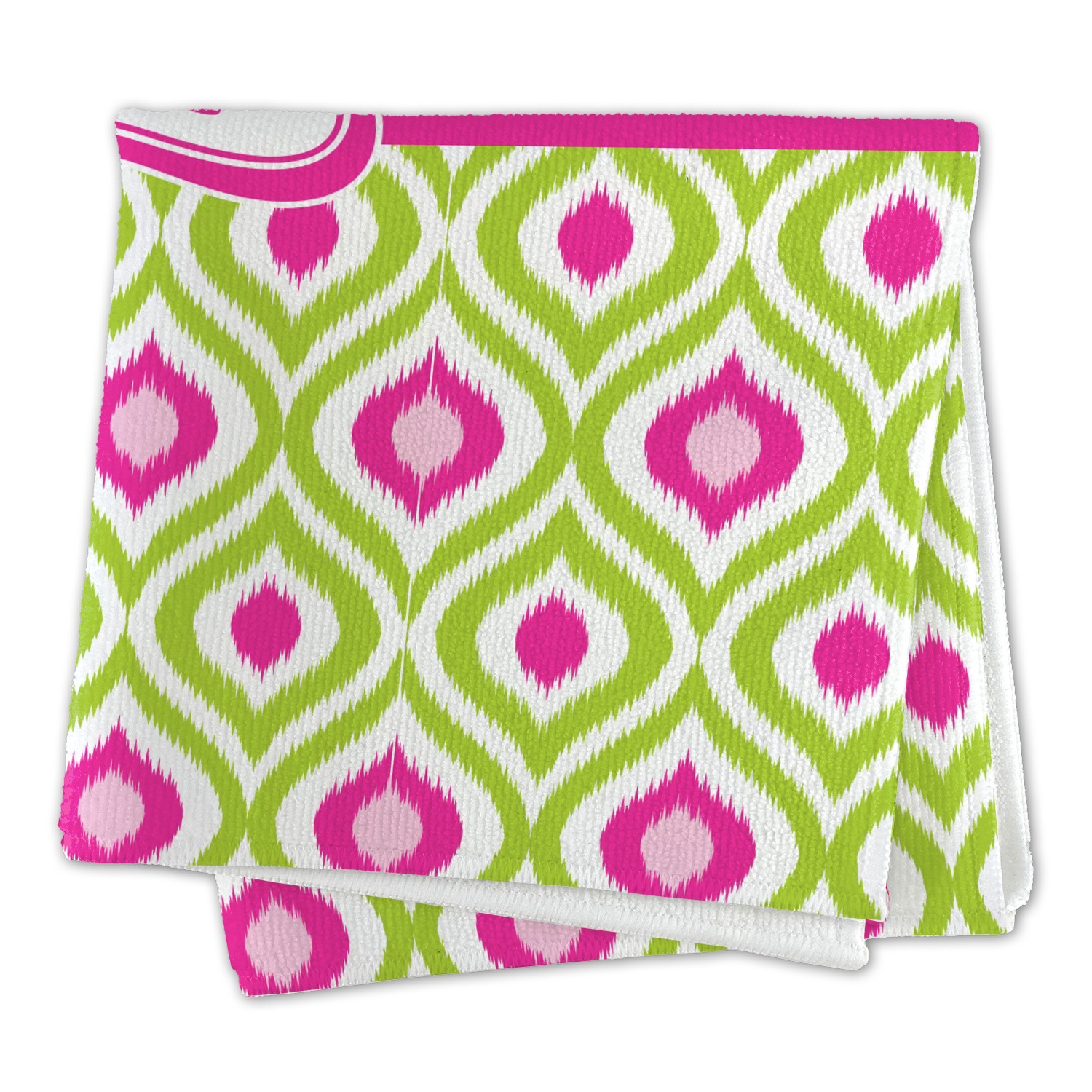 Looking for a girly girl design. The pink and green ikat print with a decorative label is as girly as it gets. We have created this ikat pattern in lime green, orchid pink and hot pink. For all of us girly girls and princesses, this is our absolute favorite!