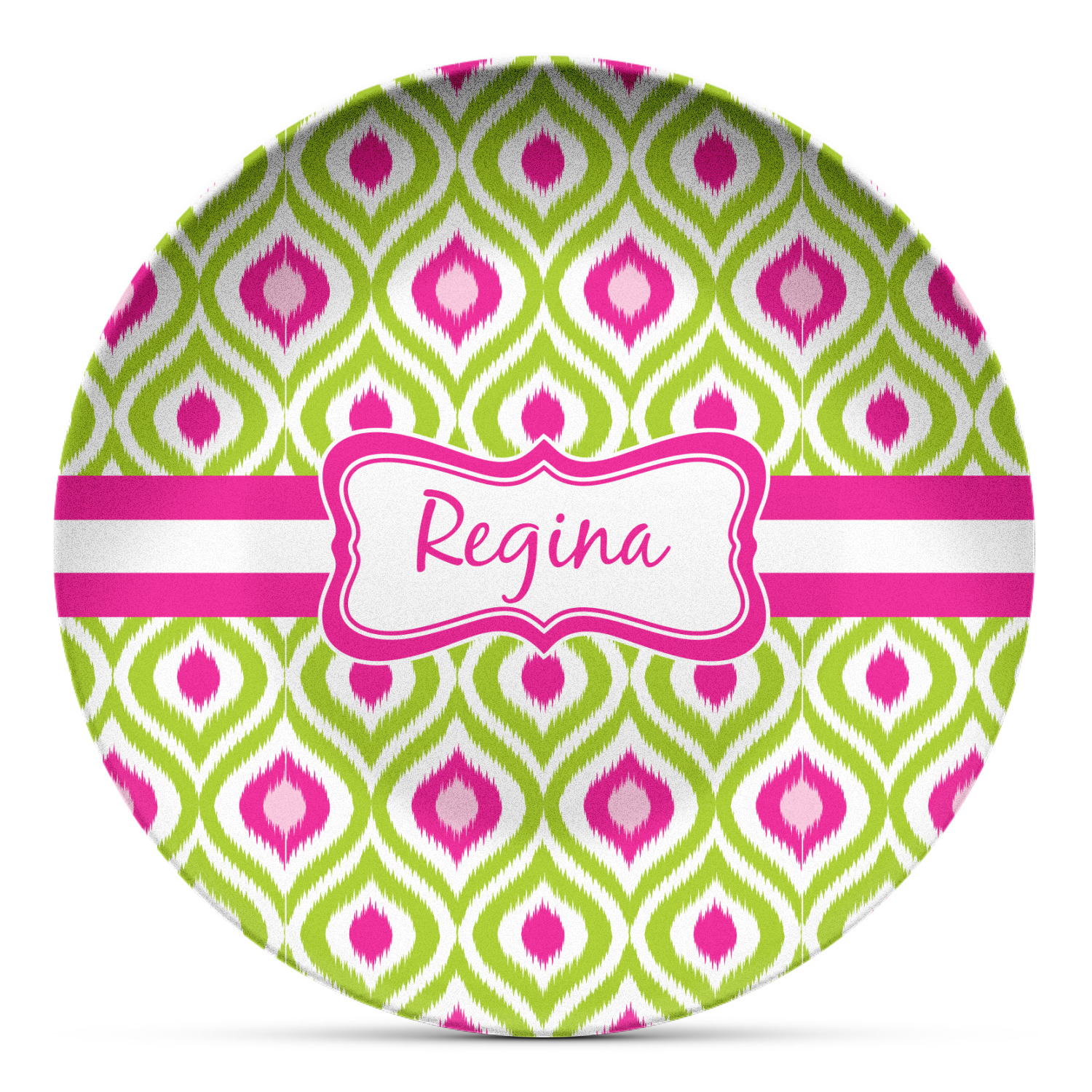 Looking for a girly girl design. The pink and green ikat print with a decorative label is as girly as it gets. We have created this ikat pattern in lime green, orchid pink and hot pink. For all of us girly girls and princesses, this is our absolute favorite!