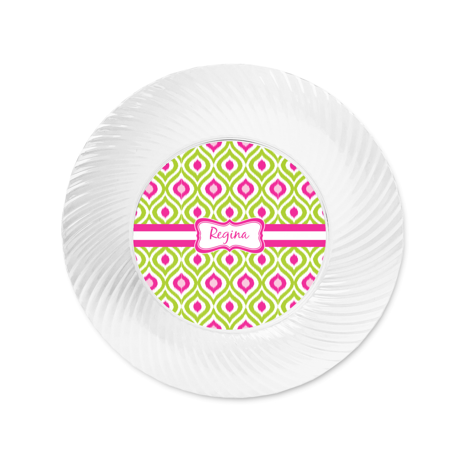 Made from a beautiful clear plastic plate as a base, your design is printed to the underside of the plate. The outside of the plate has a classic swirl texture to it for a high quality look and feel.
