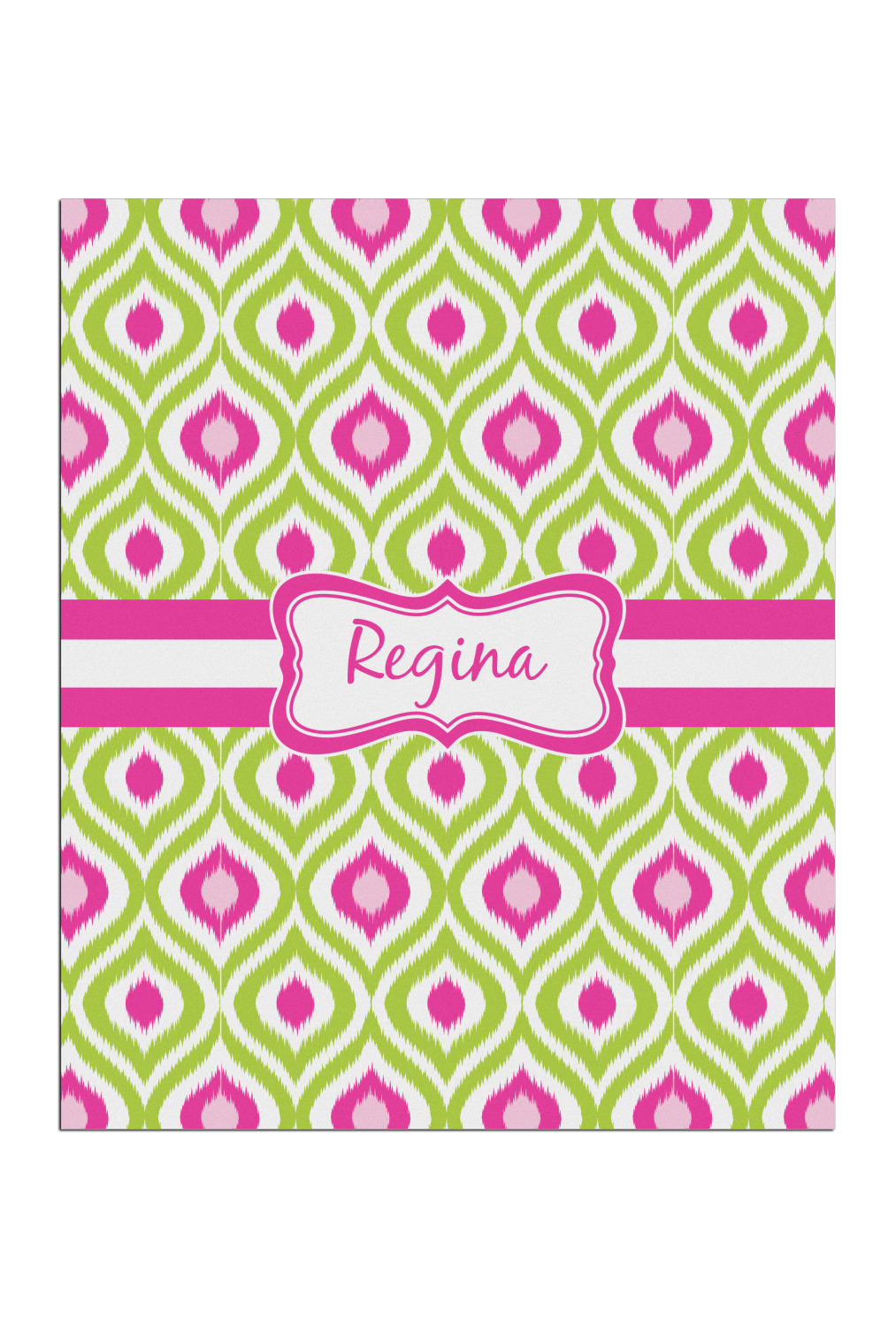 Looking for a girly girl design. The pink and green ikat print with a decorative label is as girly as it gets. We have created this ikat pattern in lime green, orchid pink and hot pink. For all of us girly girls and princesses, this is our absolute favorite!