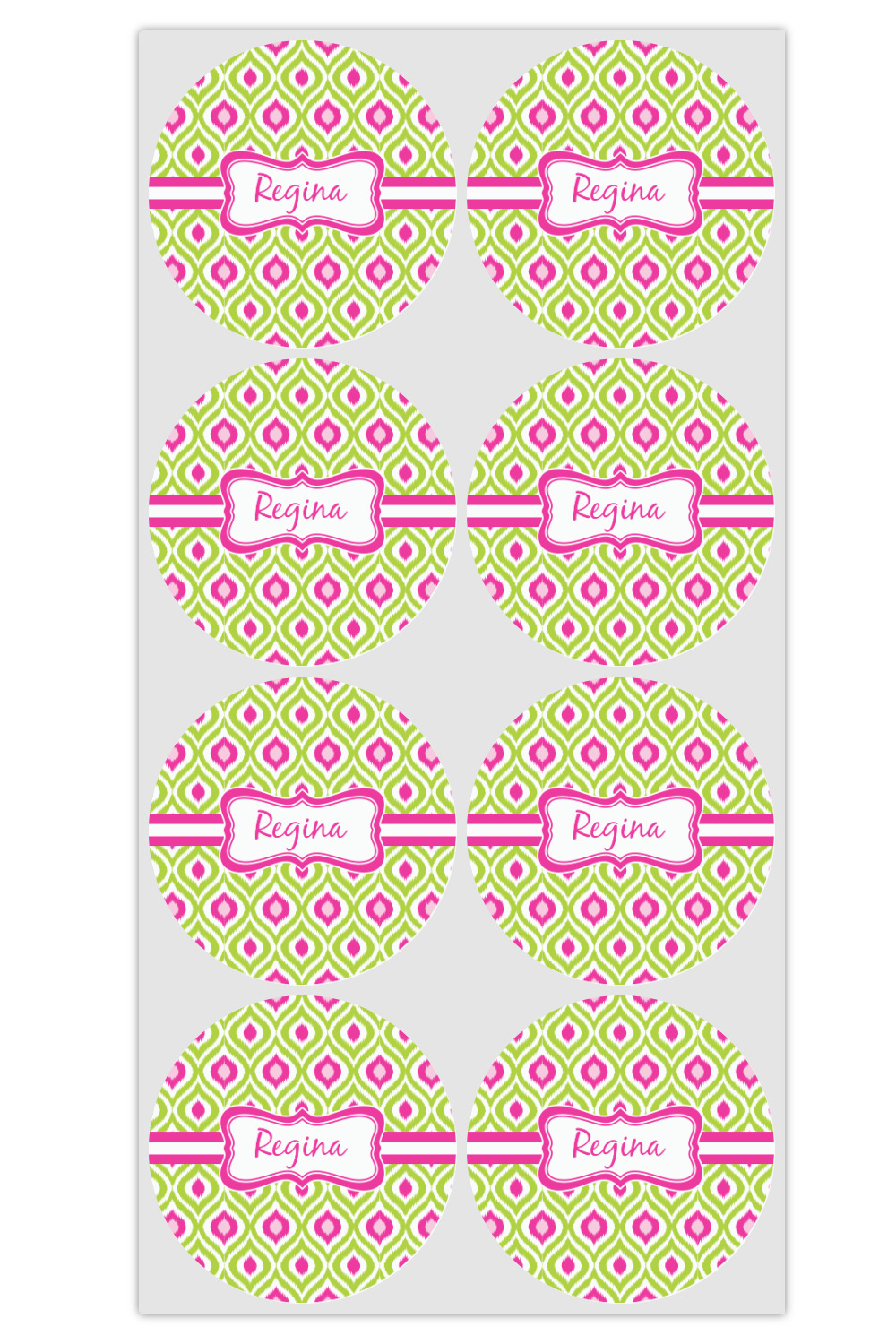 Looking for a girly girl design. The pink and green ikat print with a decorative label is as girly as it gets. We have created this ikat pattern in lime green, orchid pink and hot pink. For all of us girly girls and princesses, this is our absolute favorite!
