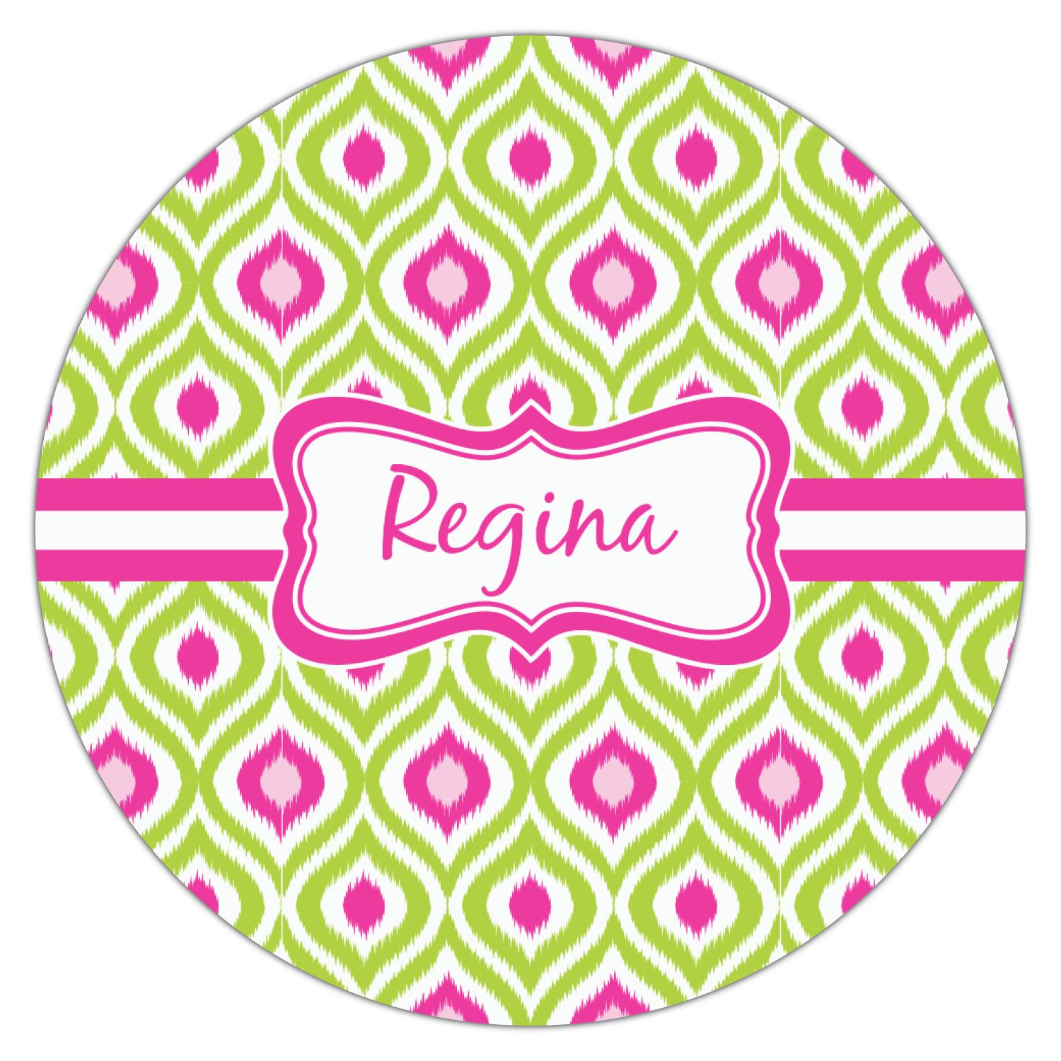 Looking for a girly girl design. The pink and green ikat print with a decorative label is as girly as it gets. We have created this ikat pattern in lime green, orchid pink and hot pink. For all of us girly girls and princesses, this is our absolute favorite!