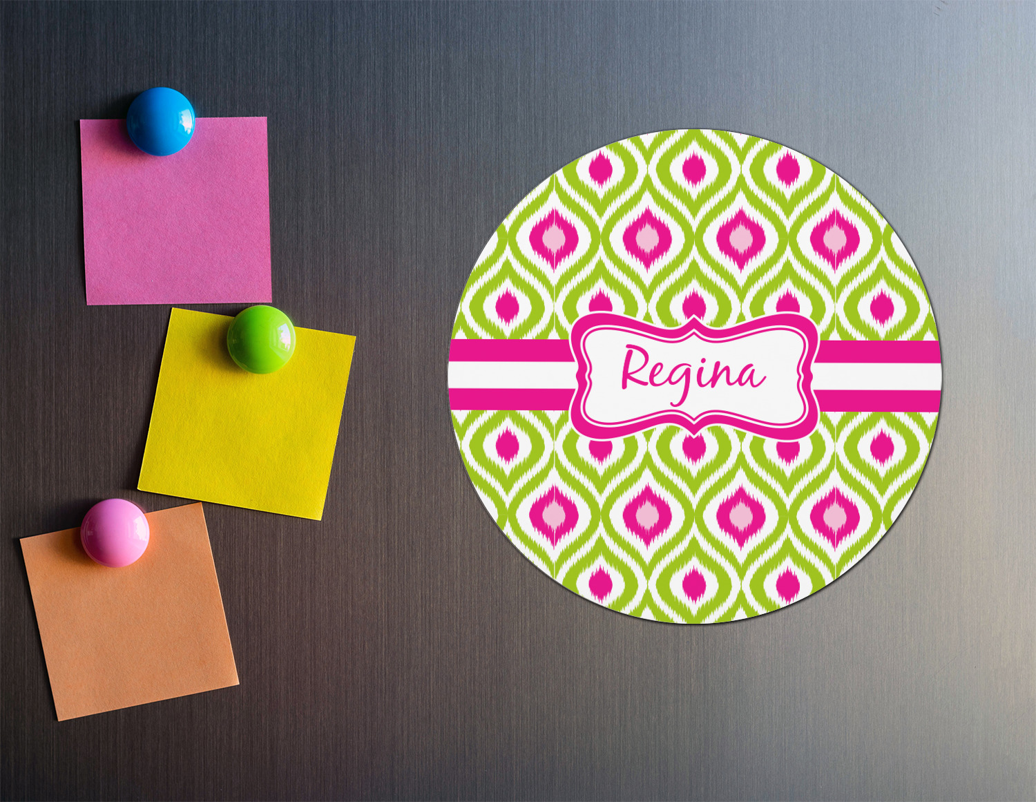 Get rid of all those unslightly magnets you've gathered from food delivery places and jazz up your fridge with our personalized round magnets. If you're looking for a small gift with a big bang you've found them!! With the designs and colors from our collections you are sure to find one that fits anyone's personality.