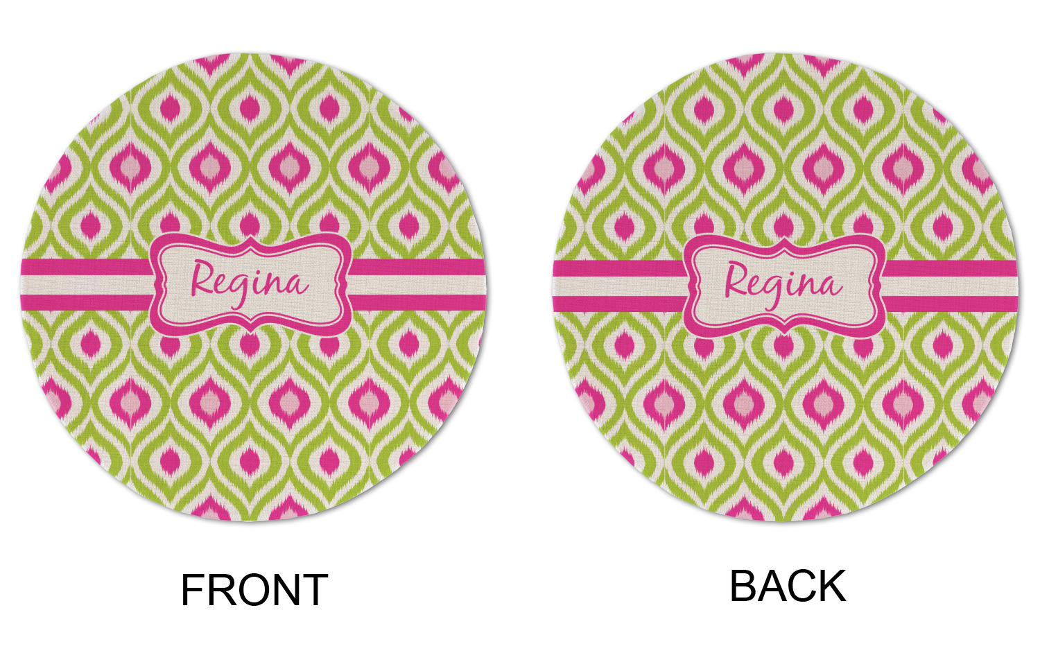 Looking for a girly girl design. The pink and green ikat print with a decorative label is as girly as it gets. We have created this ikat pattern in lime green, orchid pink and hot pink. For all of us girly girls and princesses, this is our absolute favorite!