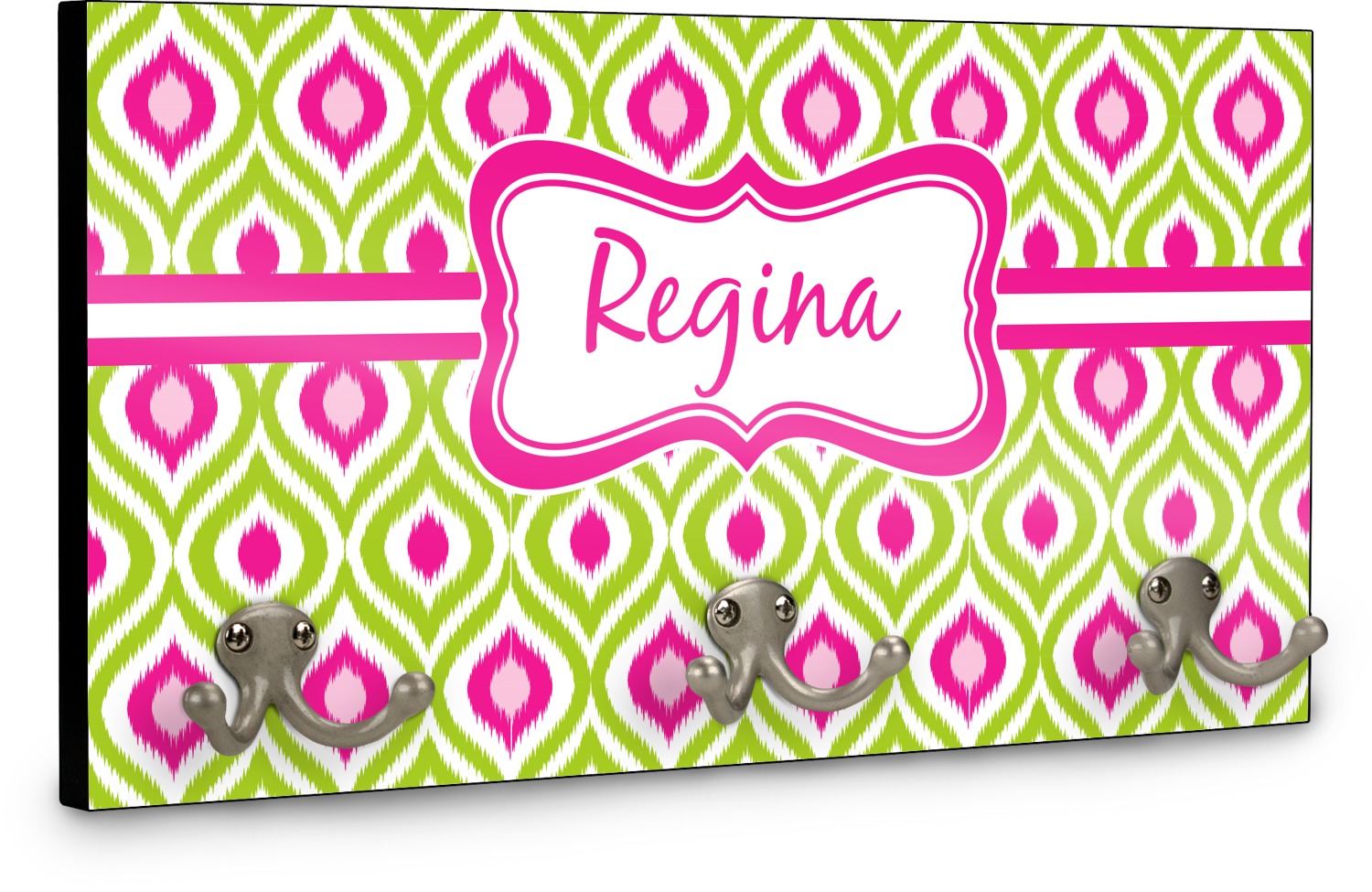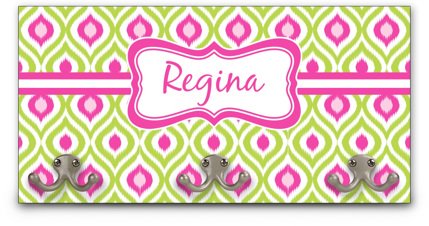 Looking for a girly girl design. The pink and green ikat print with a decorative label is as girly as it gets. We have created this ikat pattern in lime green, orchid pink and hot pink. For all of us girly girls and princesses, this is our absolute favorite!