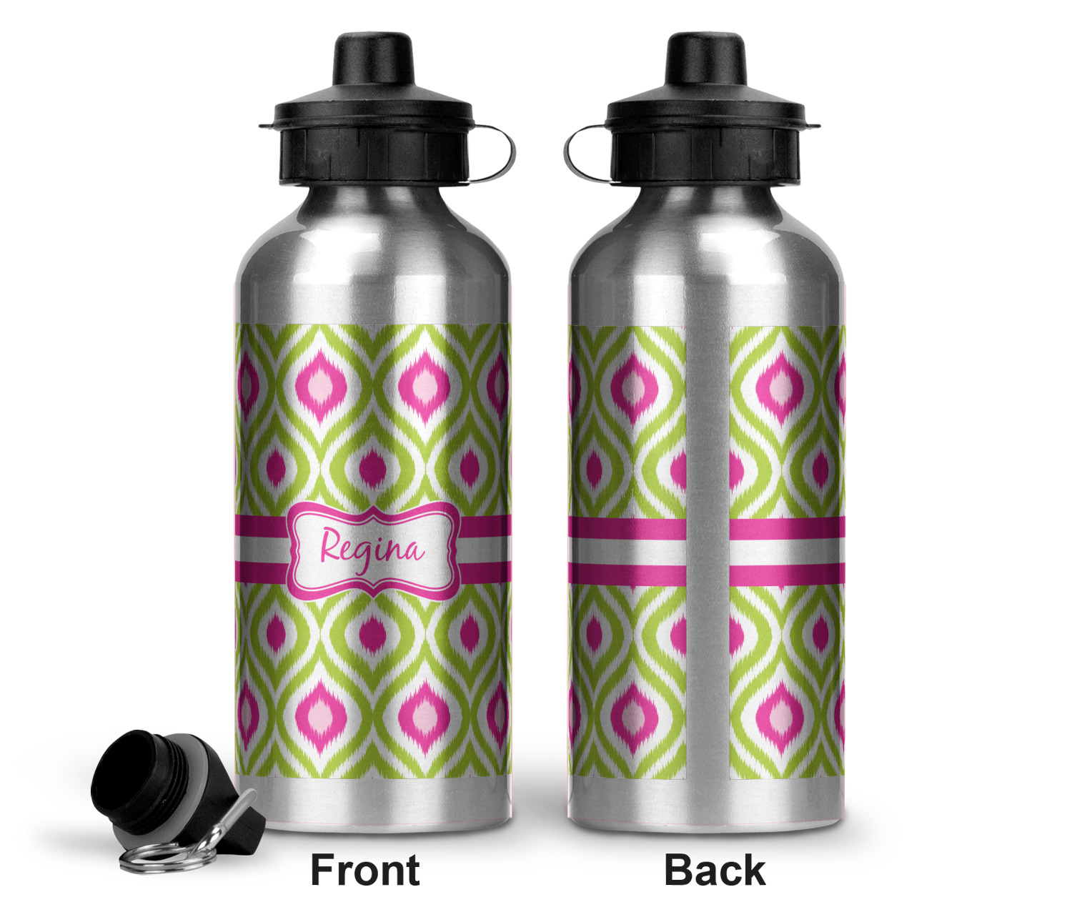 Looking for a girly girl design. The pink and green ikat print with a decorative label is as girly as it gets. We have created this ikat pattern in lime green, orchid pink and hot pink. For all of us girly girls and princesses, this is our absolute favorite!