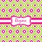 Looking for a girly girl design. The pink and green ikat print with a decorative label is as girly as it gets. We have created this ikat pattern in lime green, orchid pink and hot pink. For all of us girly girls and princesses, this is our absolute favorite!