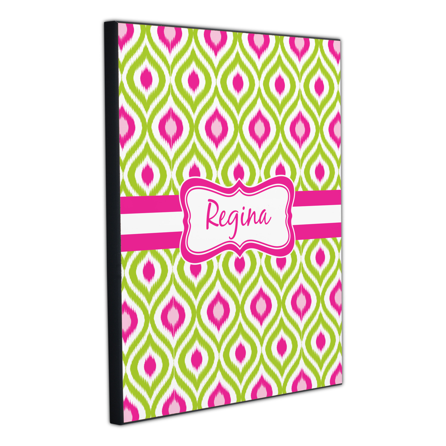 Looking for a girly girl design. The pink and green ikat print with a decorative label is as girly as it gets. We have created this ikat pattern in lime green, orchid pink and hot pink. For all of us girly girls and princesses, this is our absolute favorite!