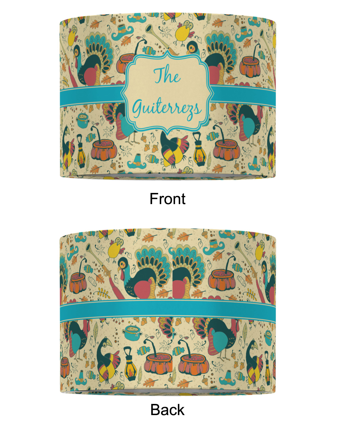 Our customized lamp shades also come in 3 different sizes: 8", 12" and 16", measuring at 8" in diameter by 6" tall, 12" in diameter by 8" tall, and 16" in diameter by 10" tall, respectively.