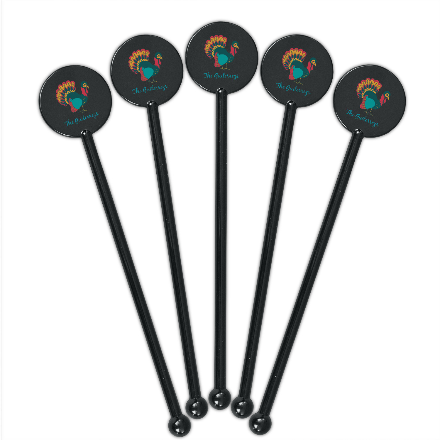 Acorns Designs for 5.5" Round Plastic Stir Sticks - Black - Double-Sided