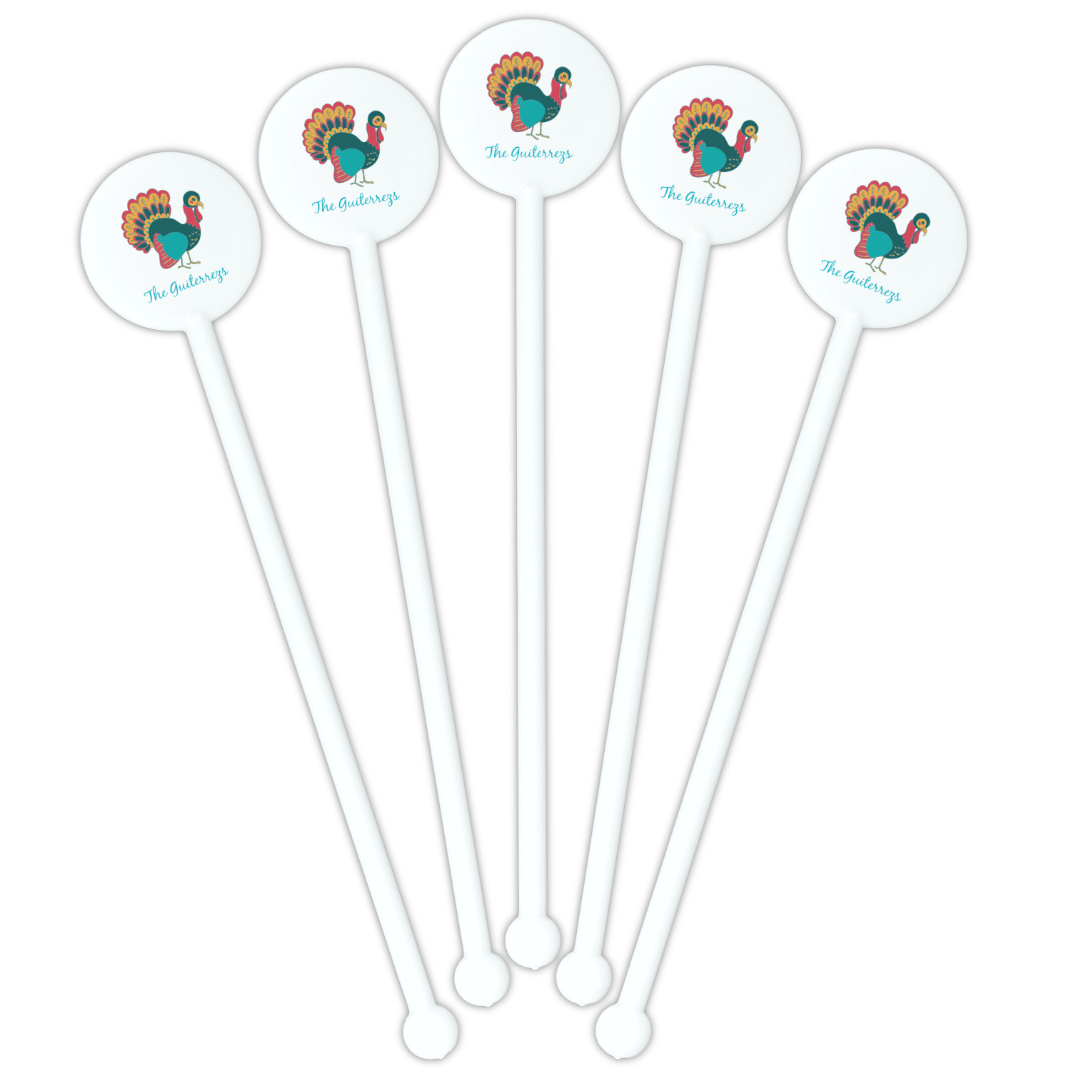 Acorns Designs for 5.5" Round Plastic Stir Sticks - White - Double-Sided