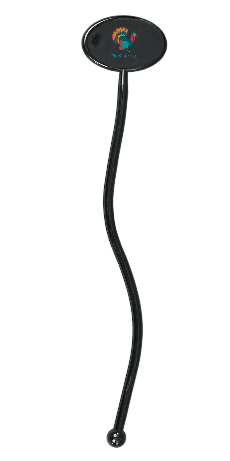 Acorns Designs for 7" Oval Plastic Stir Sticks - Black - Single-Sided