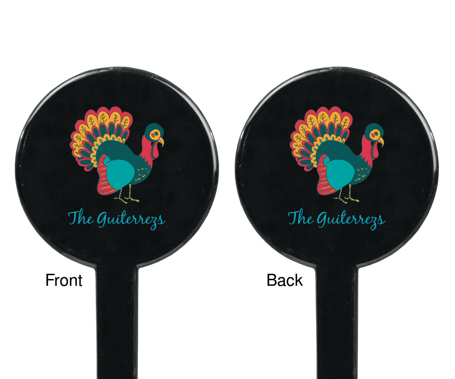 Acorns Designs for 7" Round Plastic Stir Sticks - Black - Double-Sided