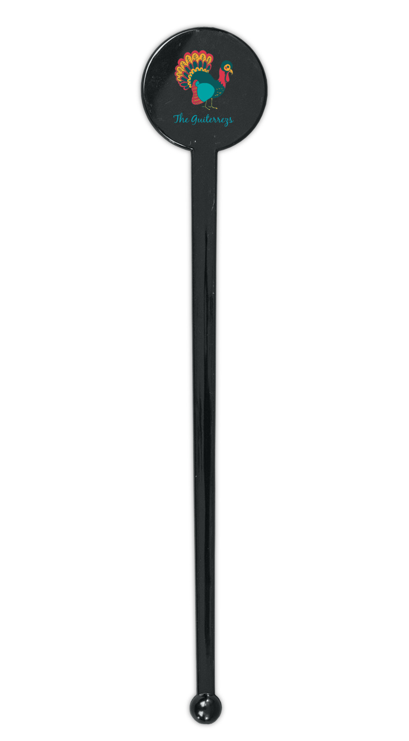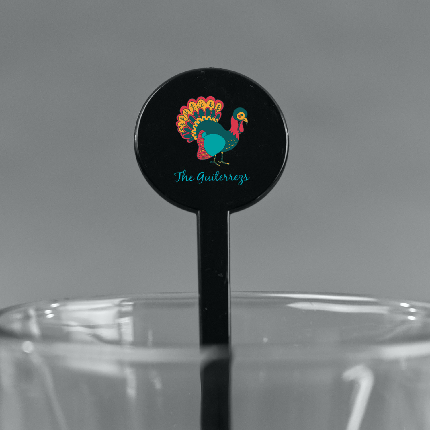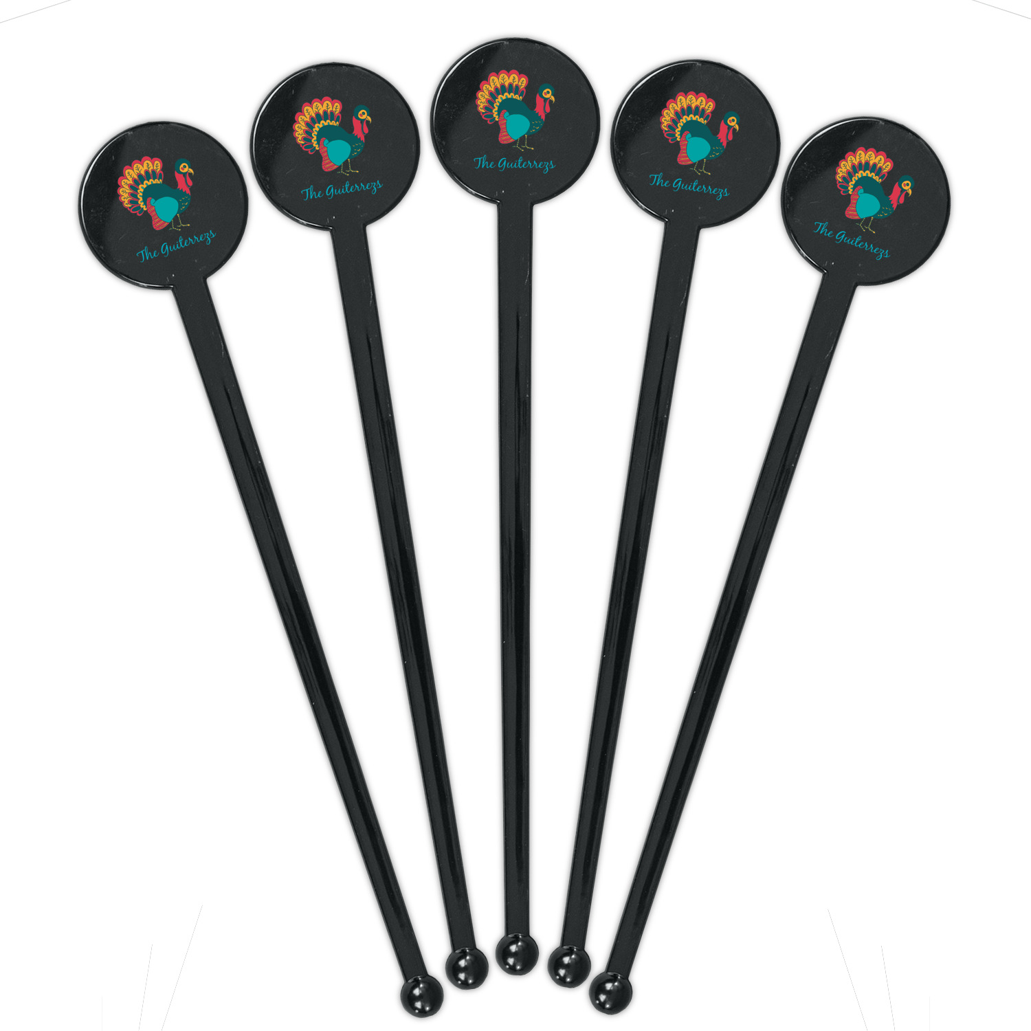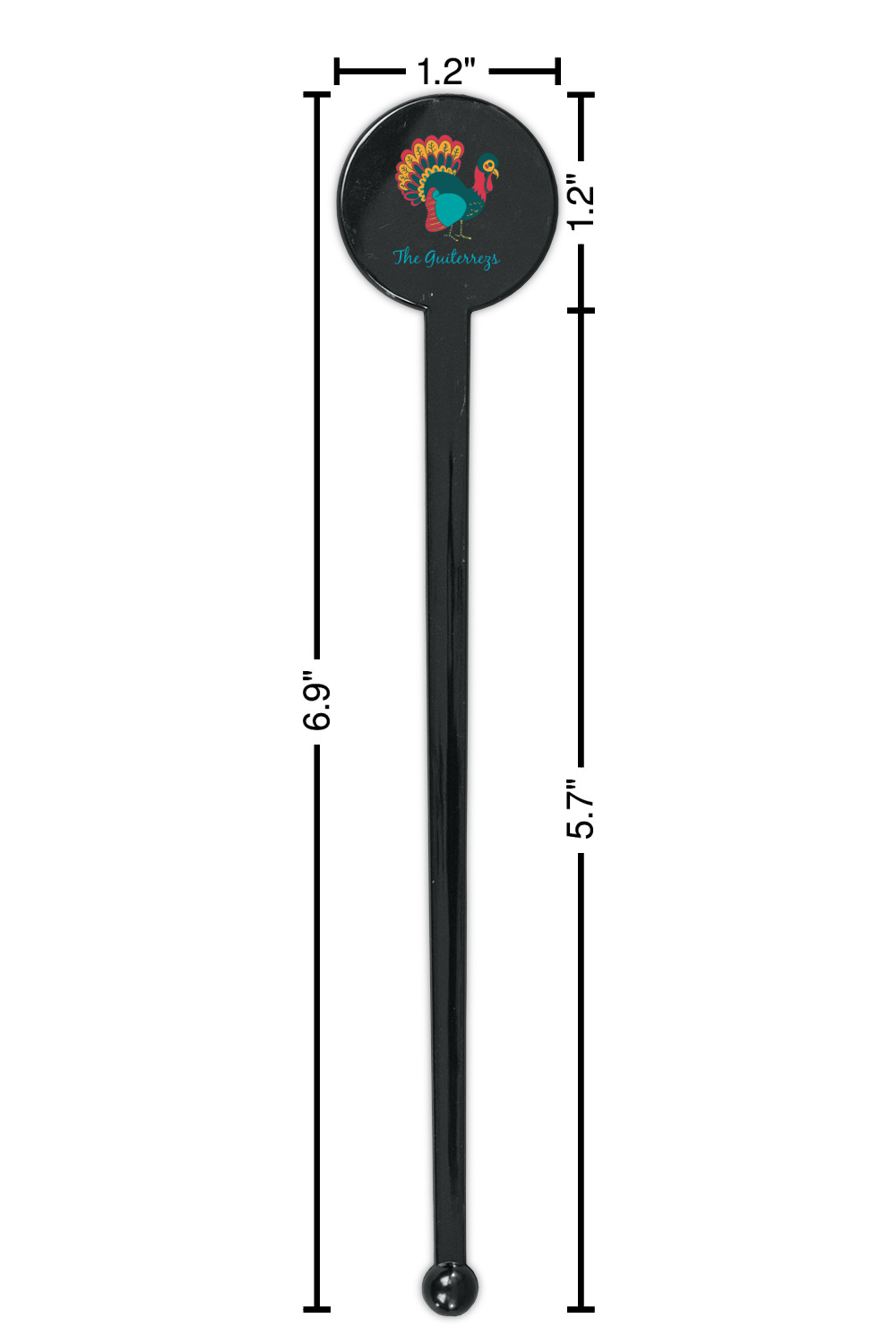 Acorns Designs for 7" Round Plastic Stir Sticks - Black - Single-Sided