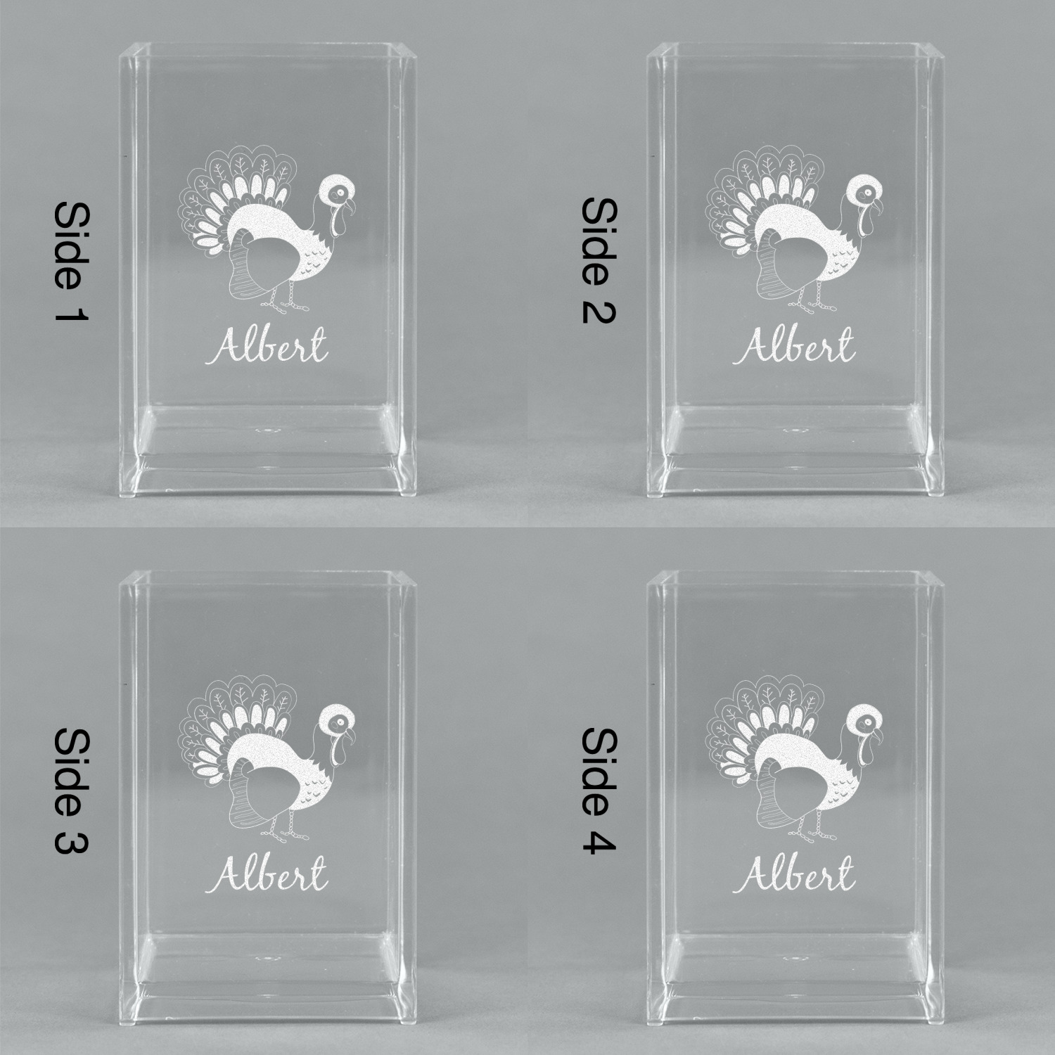 Add a great accessory to your desk with one of these acrylic pen holders. A great way to store your writing utensils, and personalized to suit your needs.