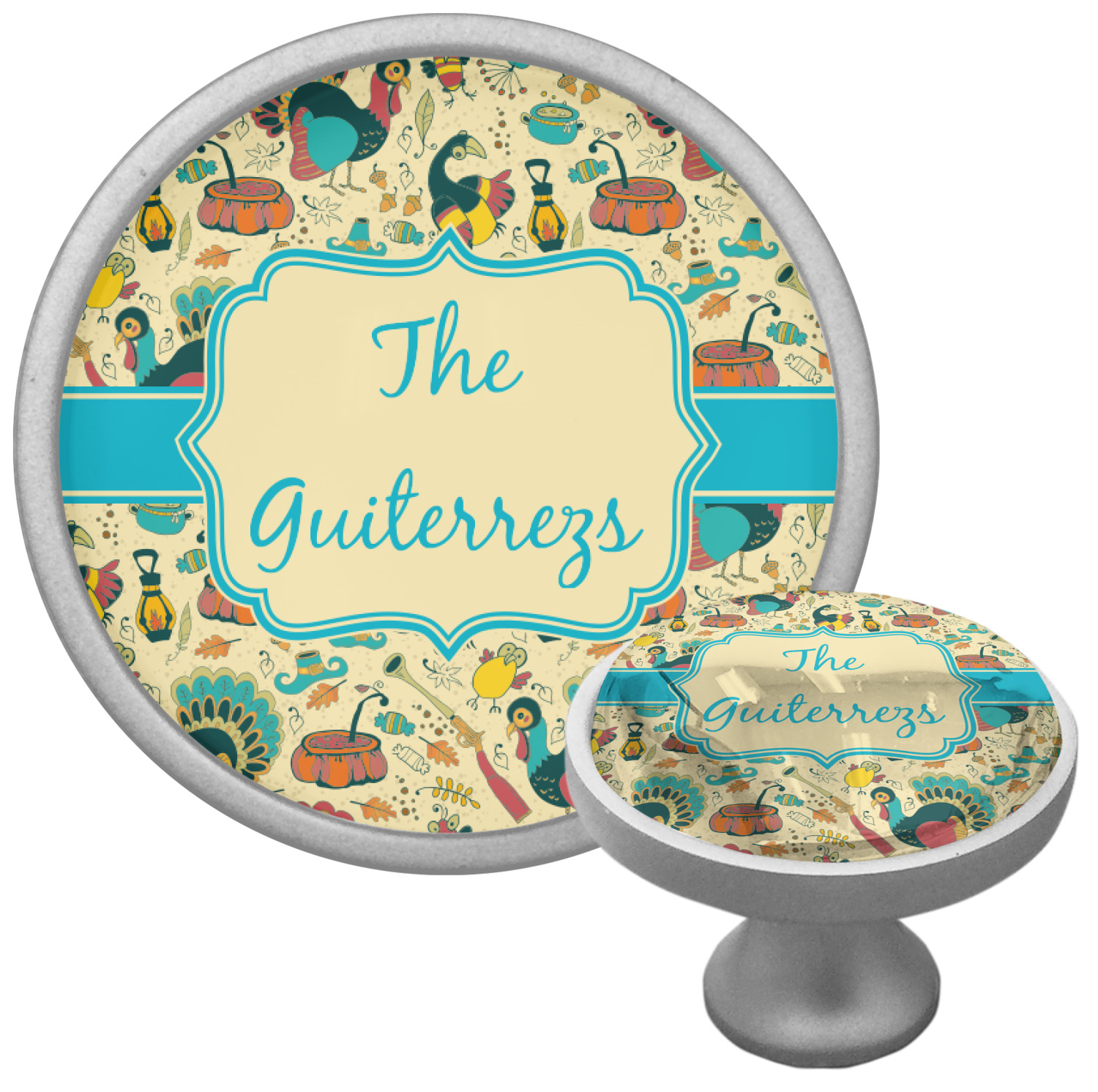 We sell these cabinet pulls in two different colors to better match your room's color scheme. We offer an oil-rubbed bronze base that is black in color, and a satin nickel option, which has a silver color. Your design is displayed across a high gloss vinyl insert that is placed on top of these cabinet handles. We then place a 1 inch thick glass cabochon atop the design, which seals the cabinet knob and makes the colors of your customization stand out. These custom cabinet knobs are approximately 1.3 inches in diameter. Your purchase includes a 1 inch screw that can be used to mount the knob to any cabinet in your home.