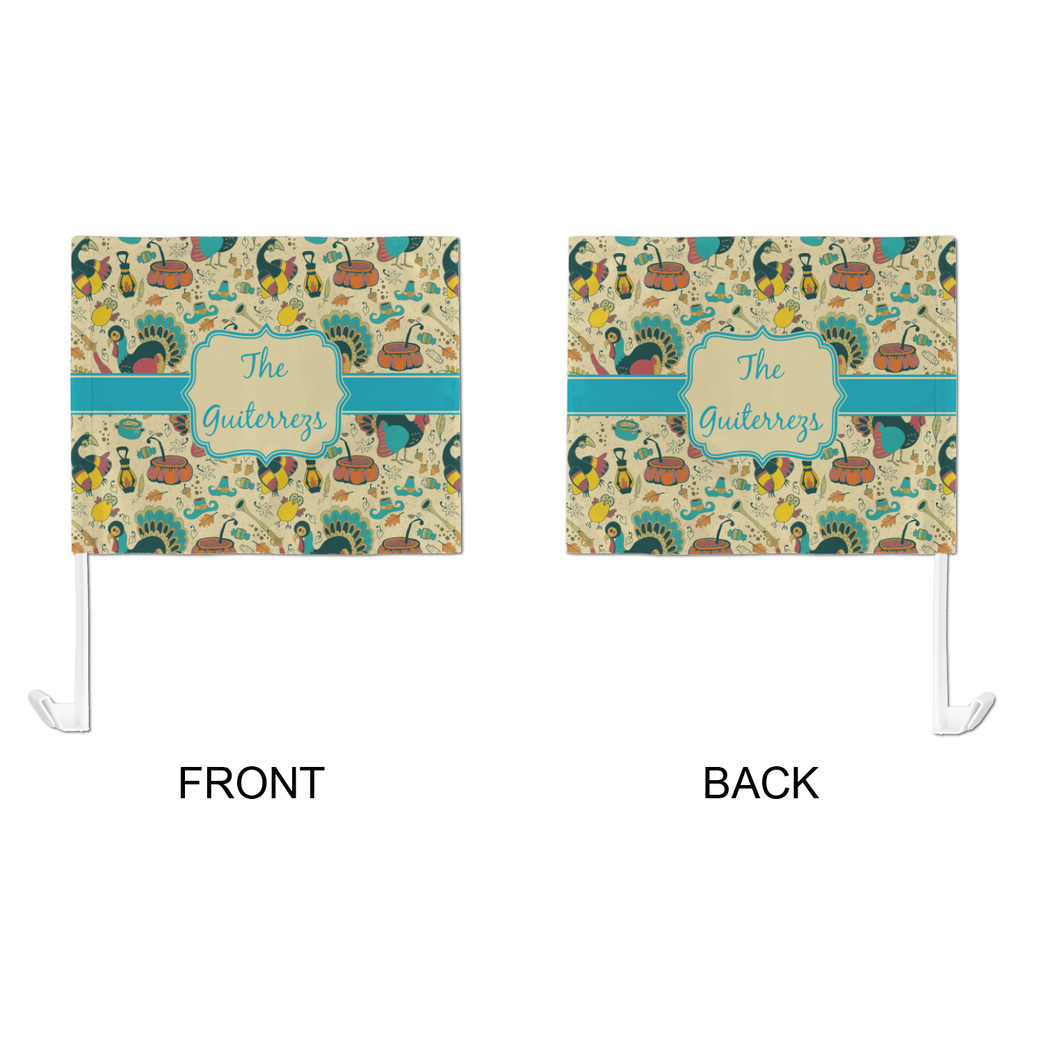 Our personalized flags are made from a durable, yet lightweight cloth that will proudly bear your logo or design of choice, while withstanding the outside elements. We have two size options - 8" x 11" and 11" x 15". Both come with a flag pole which includes a clip that secures the pole to the side window, whether it is rolled up or down. The flags are printed on both sides to display your design from all directions.