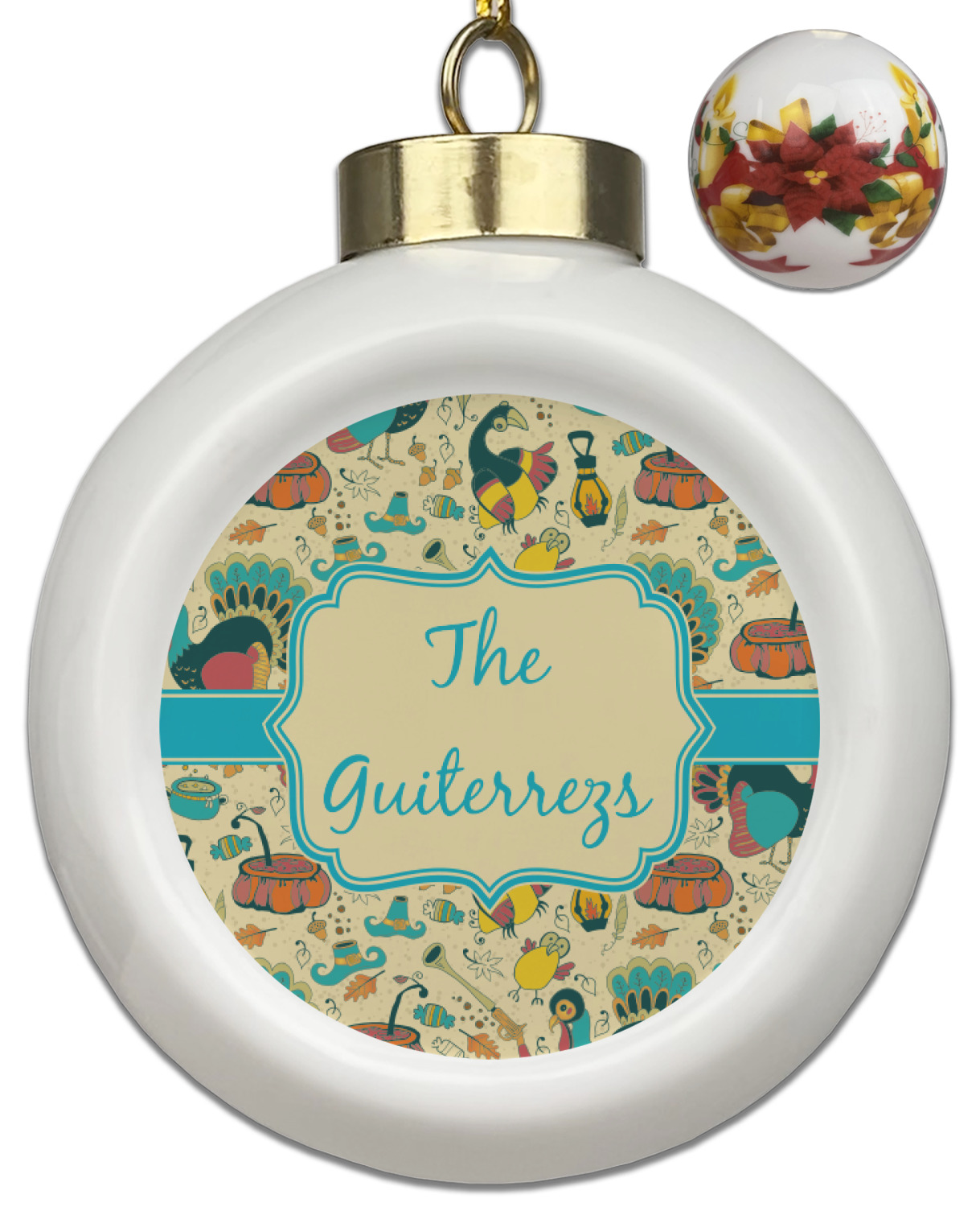 Our Christmas ornaments are a unique ceramic ball shape with a twist as it has a flat face to display your custom design! Select from one of our two design types - Christmas Tree or Poinsettia Garland - to adorn the curved back of your personal design. Each ornament measures 3H x 2.5W x 2D accompanied with a gold string accent for finishing touches to hang on your beautiful Christmas tree!