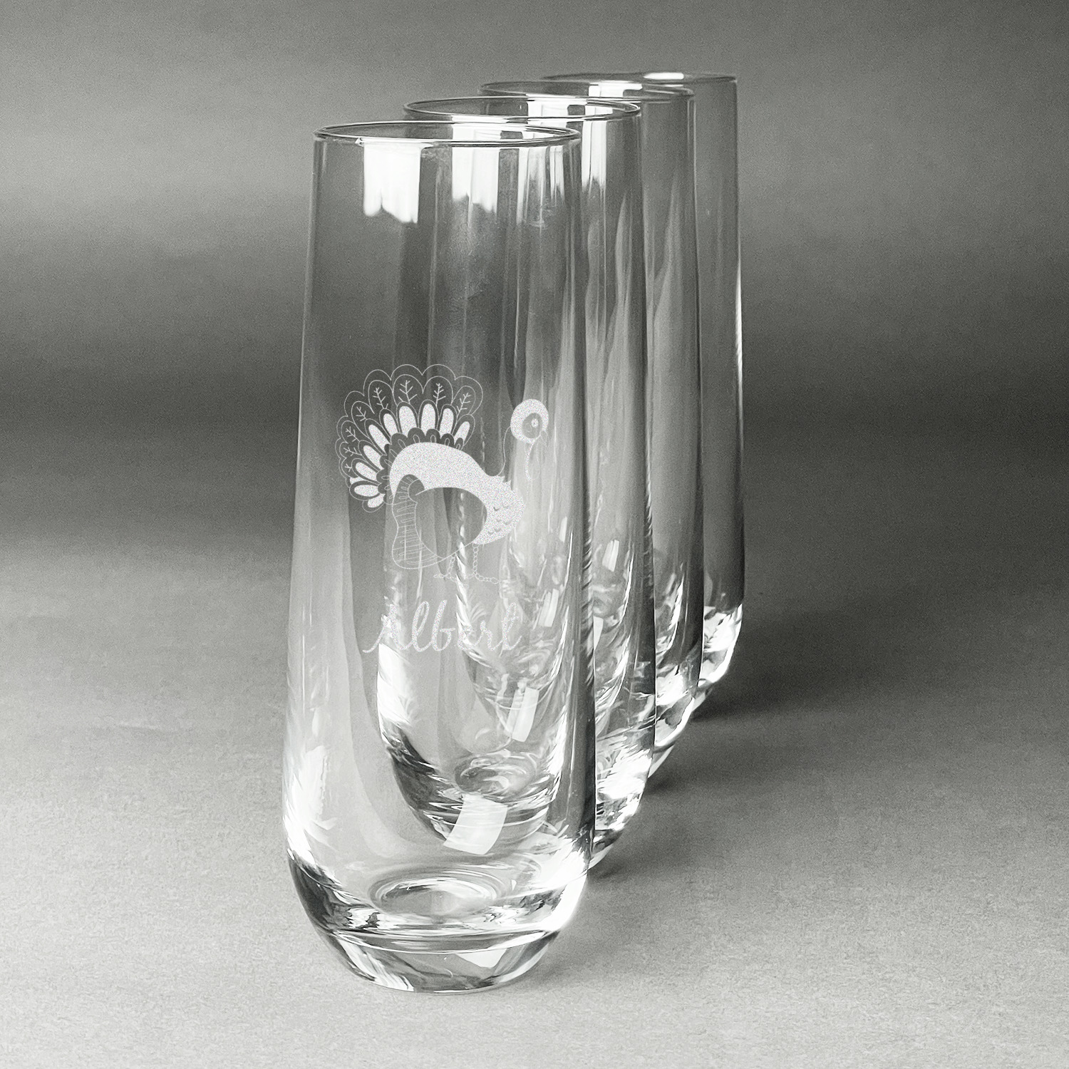 Design your custom stemless champagne flutes and we will then laser engrave your unique design on them for you. Whether they are a special gift for a bride and groom, for your New Years Eve party, or a bachelorette party you are sure to be able to add a custom personalized touch to make them perfect for the occasion.