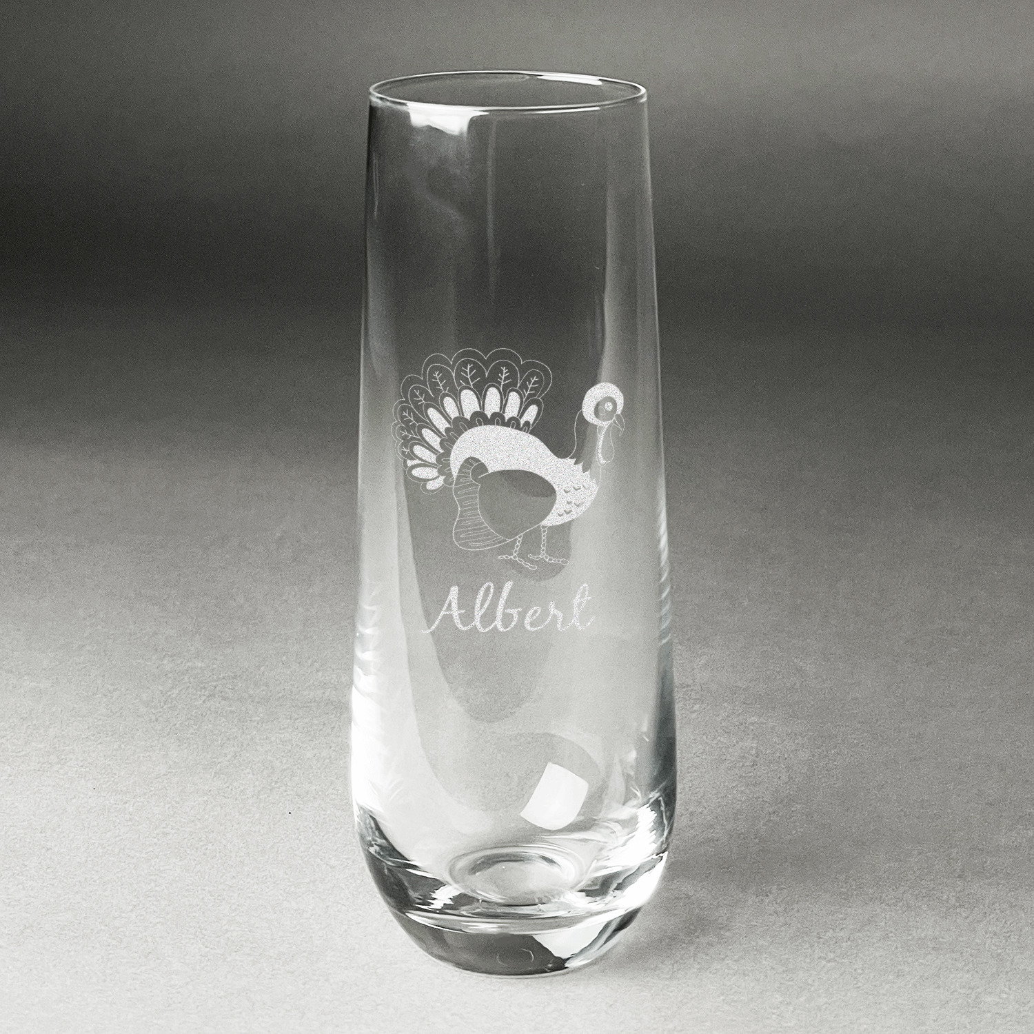Design your custom stemless champagne flutes and we will then laser engrave your unique design on them for you. Whether they are a special gift for a bride and groom, for your New Years Eve party, or a bachelorette party you are sure to be able to add a custom personalized touch to make them perfect for the occasion.