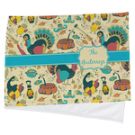 This Old Fashioned Thanksgiving design is hand drawn and includes pictures of turkey, birds, pot of food, lanterns, gun, candy, leaves and acorns; giving it a very old fashioned feel. The design has some of the traditional colors of oranges, reds and yellows, but also has a beautiful teal coloring in the turkey and the pilgrim hat; giving it a chic bold look.