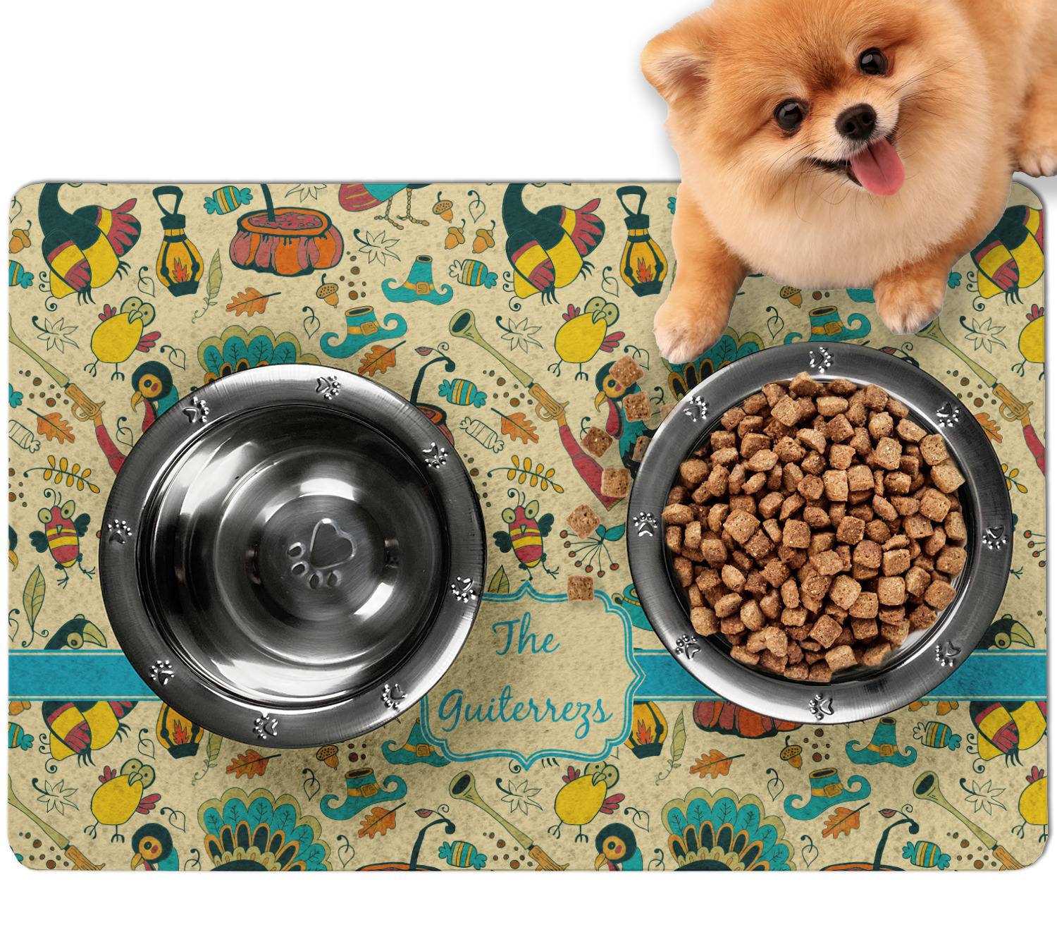 This dog bowl mat, fabricated from polyester, proudly displays your customized design on its top, while its bottom includes a non-slip rubber. This feature allows it to remain firmly in place, even when your dog spills his/her water. With 3 sizes available (18" x 12", 24" x 18", 30" x 24"), the pet food mat has ample space for both a food and water bowl for any sized dogs. Though specified for dogs' use, these mats are also a splendid option for cats.