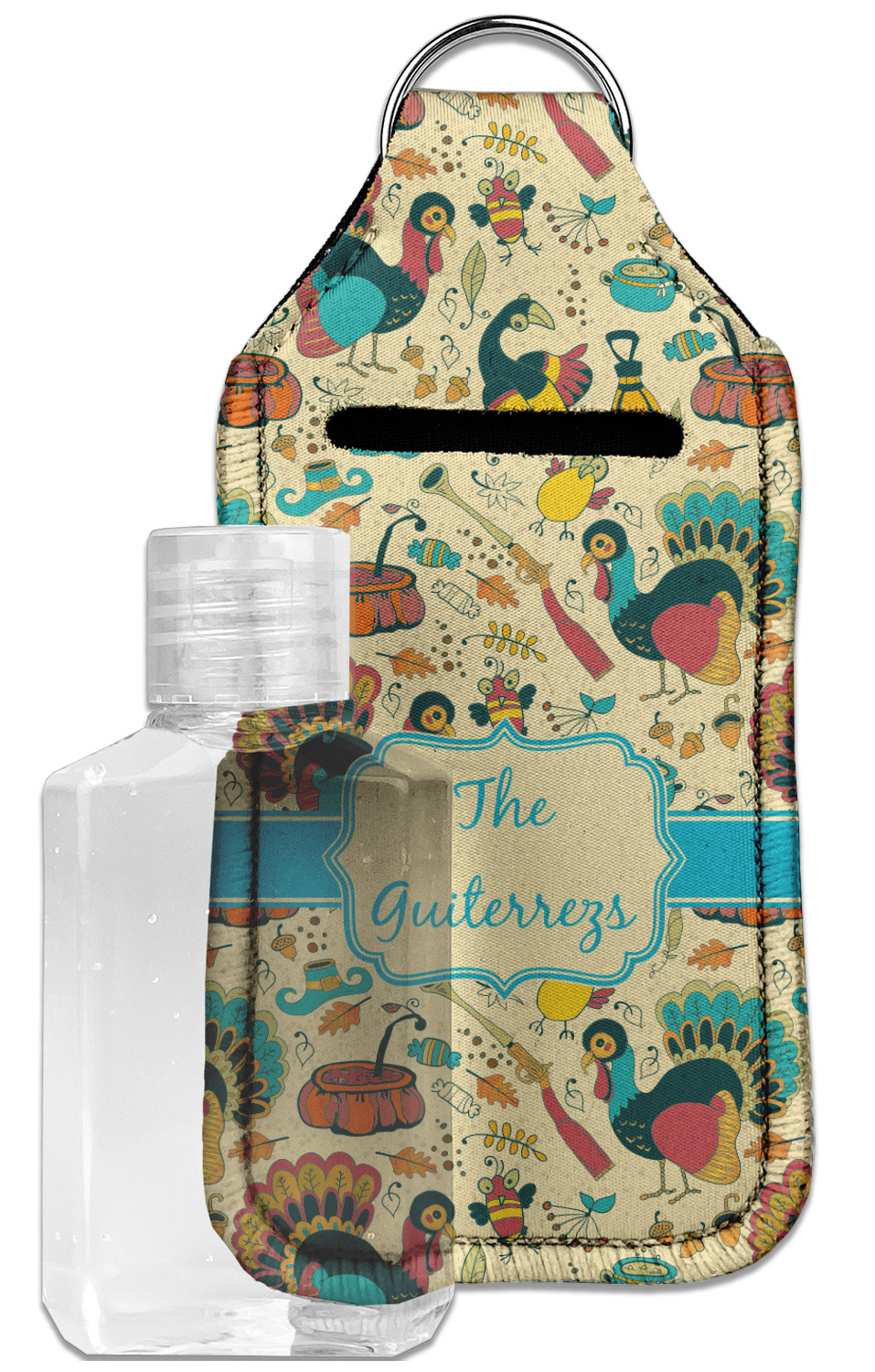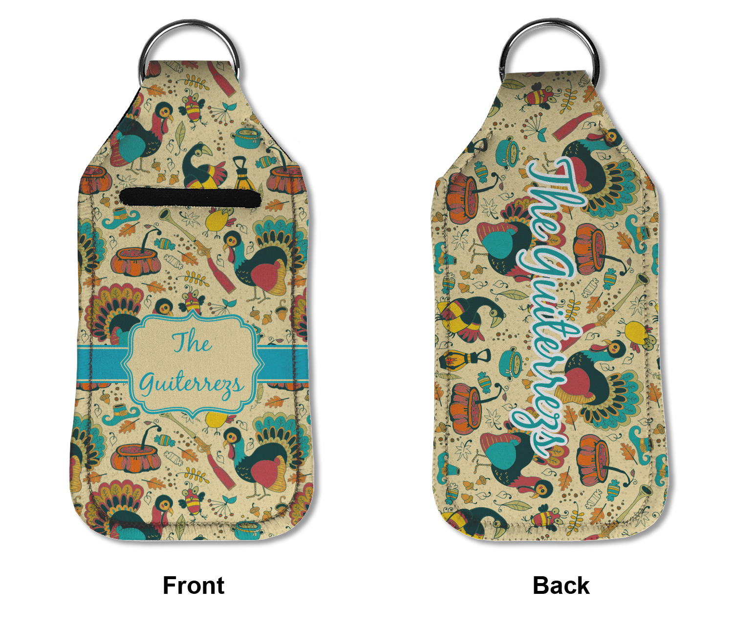Each hand sanitizer holder comes with its own empty travel-sized, refillable hand sanitizer sure to fit snug in your customized sanitizer case! Our hand sanitizer cases are a durable, yet soft neoprene material sure to last any daily activities or travel agenda. Customize and personalize a hand sanitizer bottle holder with one of our two sizes - small (4.25" x 2.25") or large (5.5" x 2.5"). Each travel sanitizer holder comes with a keyring for attachment on bags, keys, or more!