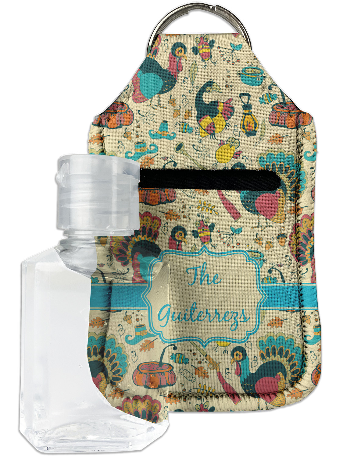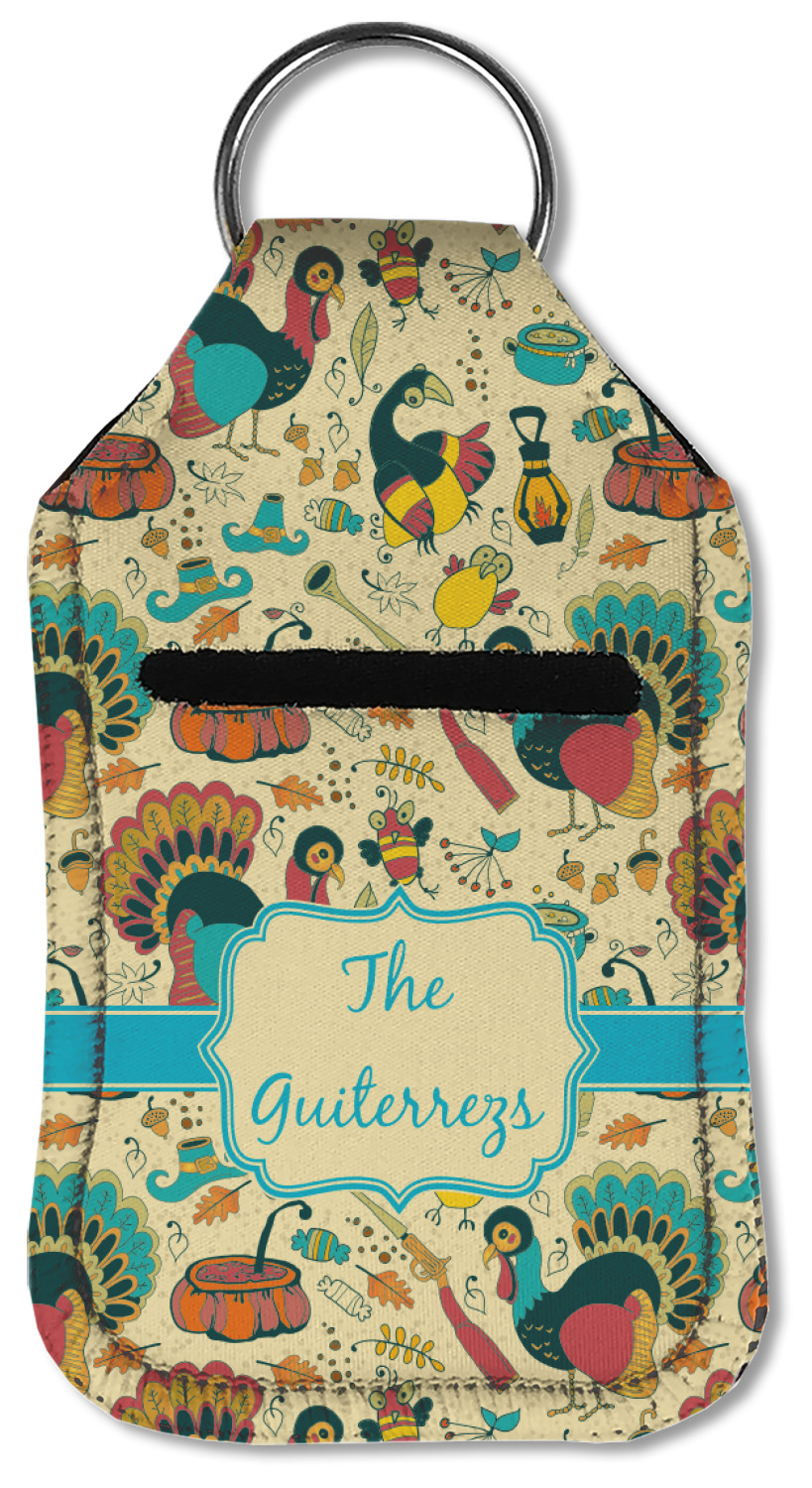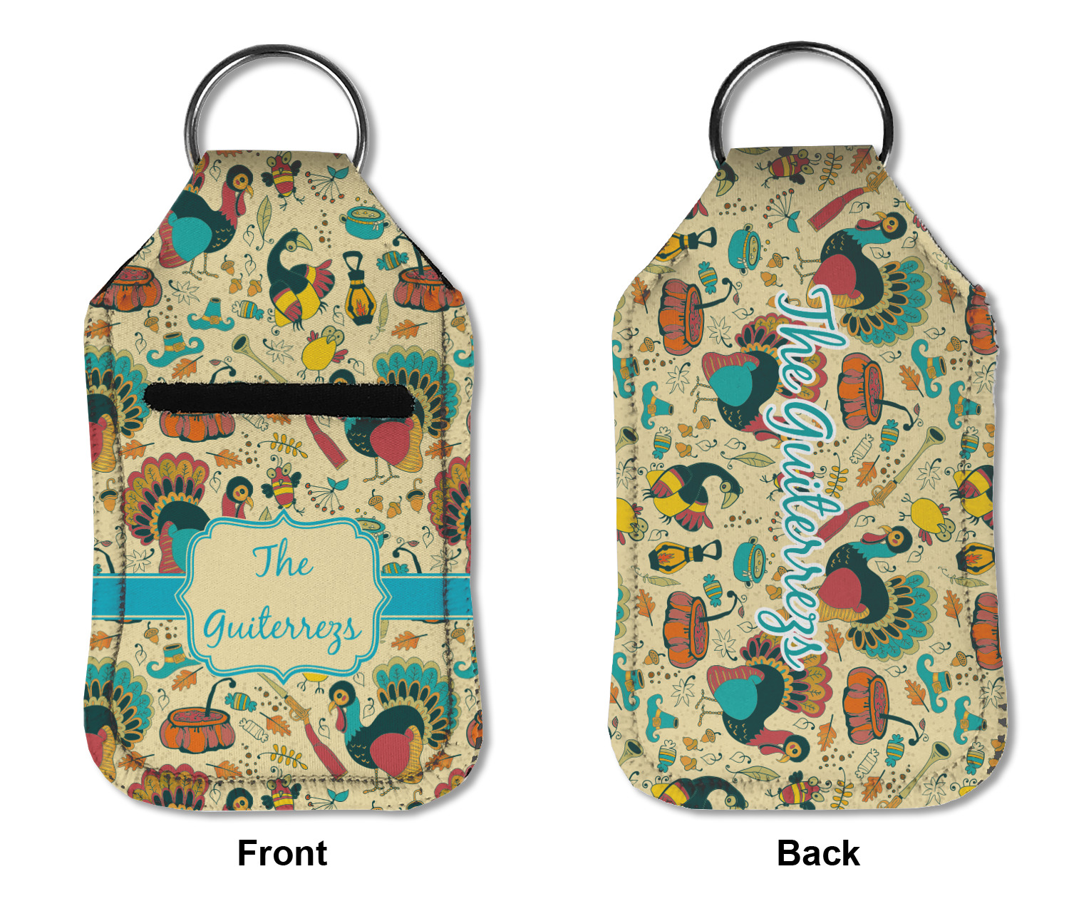 Each hand sanitizer holder comes with its own empty travel-sized, refillable hand sanitizer sure to fit snug in your customized sanitizer case! Our hand sanitizer cases are a durable, yet soft neoprene material sure to last any daily activities or travel agenda. Customize and personalize a hand sanitizer bottle holder with one of our two sizes - small (4.25" x 2.25") or large (5.5" x 2.5"). Each travel sanitizer holder comes with a keyring for attachment on bags, keys, or more!