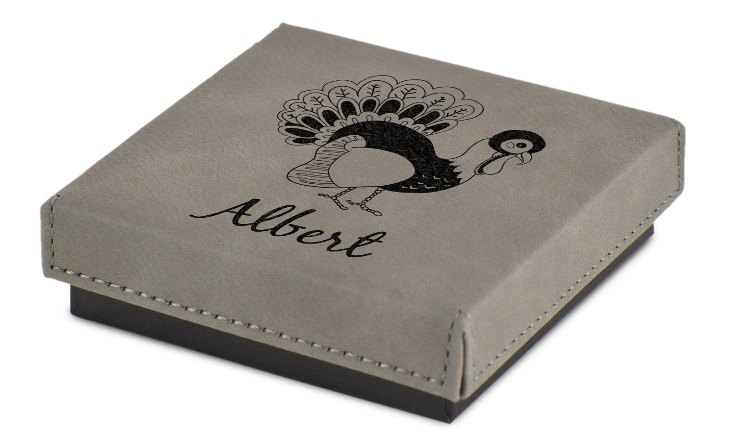 This jewelry gift box measures 3.5 inches long by 3.5 inches wide, and 1 inch deep. The box fits different sized jewelry items such as bracelets, necklaces, watches, earrings, rings and more. Engraved with a laser this high quality paper board and faux leather jewelry gift box is unique and makes any gift stand out.