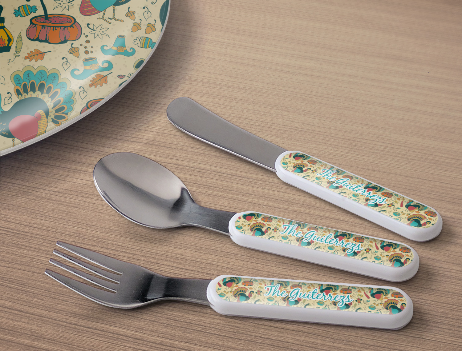 This set of kids' silverware includes a 5.5 inch spoon, fork, and knife, catered to your little one's needs. The prongs of this fork are flat and dull, while our spoon is small enough for tiny mouths, and the dullness of the knife itself resembles a butter knife, at most. These kids' utensils are made of stainless steel, while the handles are crafted from a durable plastic that will withstand the energy and use of your young one. We print your customization across the handles, making the cutlery set unique to your child only.