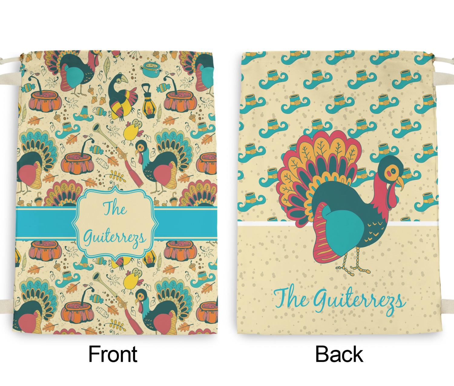 Carry your laundry in style with these customized laundry bags. Available in two sizes, featuring a natural colored woven strap and a cinch cord, these bags hold a lot of clothes or anything else you want to fit in them.